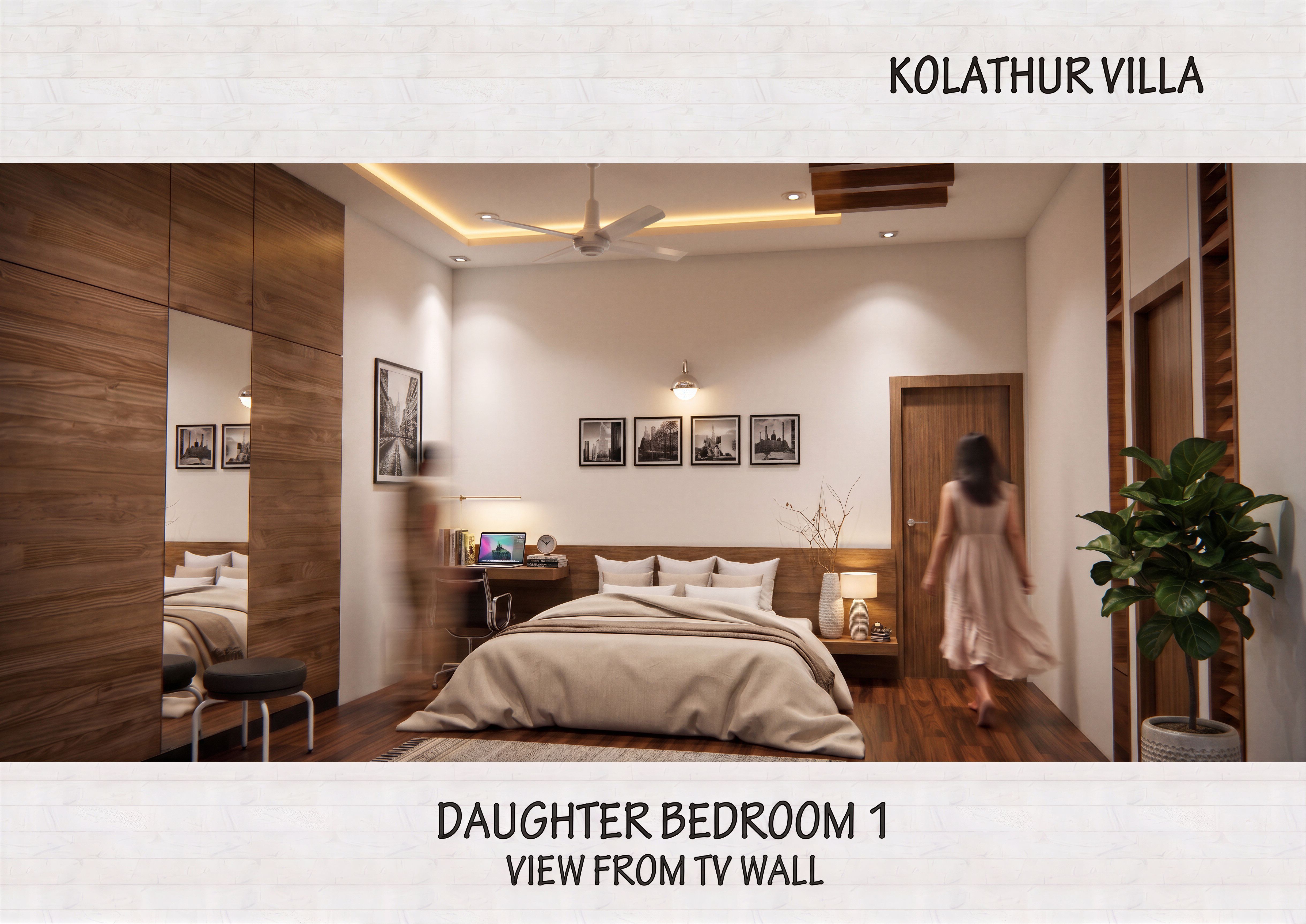 PromptMake a high quality rendered photo realistic interior view of this beautiful daughter's first floor bed room in a Villa in Chennai, Tamil Nadu. Correction- , keep exact camera angle