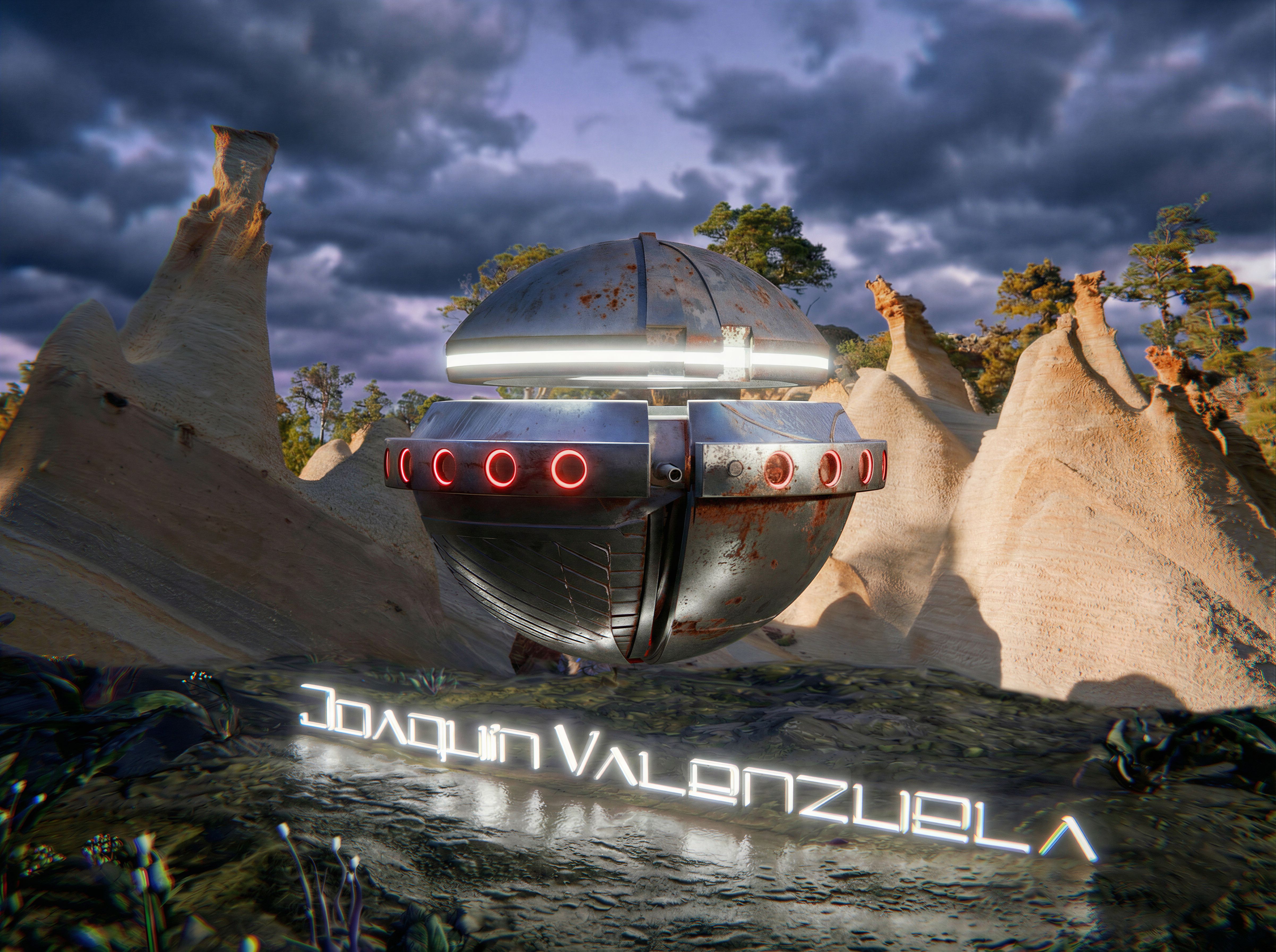Sustituye las montañas y pon en su lugar las montañas de las imágenes de referencia. Limpia el suelo de plantas alrededor de la nave para que la nave se vea más claramente con respecto a suelo. Conserva la tipografía tal como está y también conserva el mismo suelo justo delante de las letras., keep exact camera angle