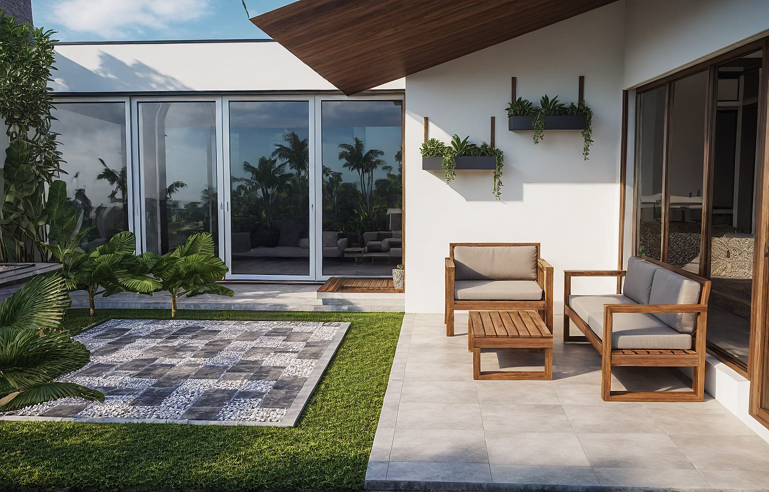 TROPICAL BACKYARD TERRACE WITH OUTDOOR SOFA