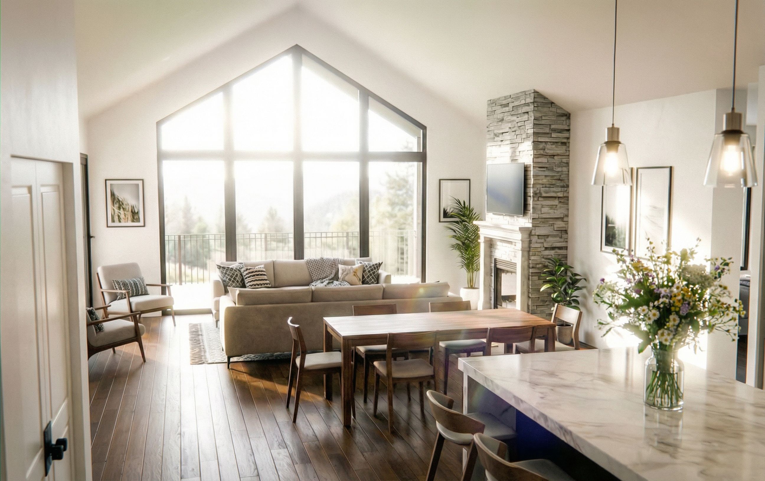 Promptfull sun exposure, i want to be blinded by daylight, add some flowers to the island countertop, keep exact camera angle