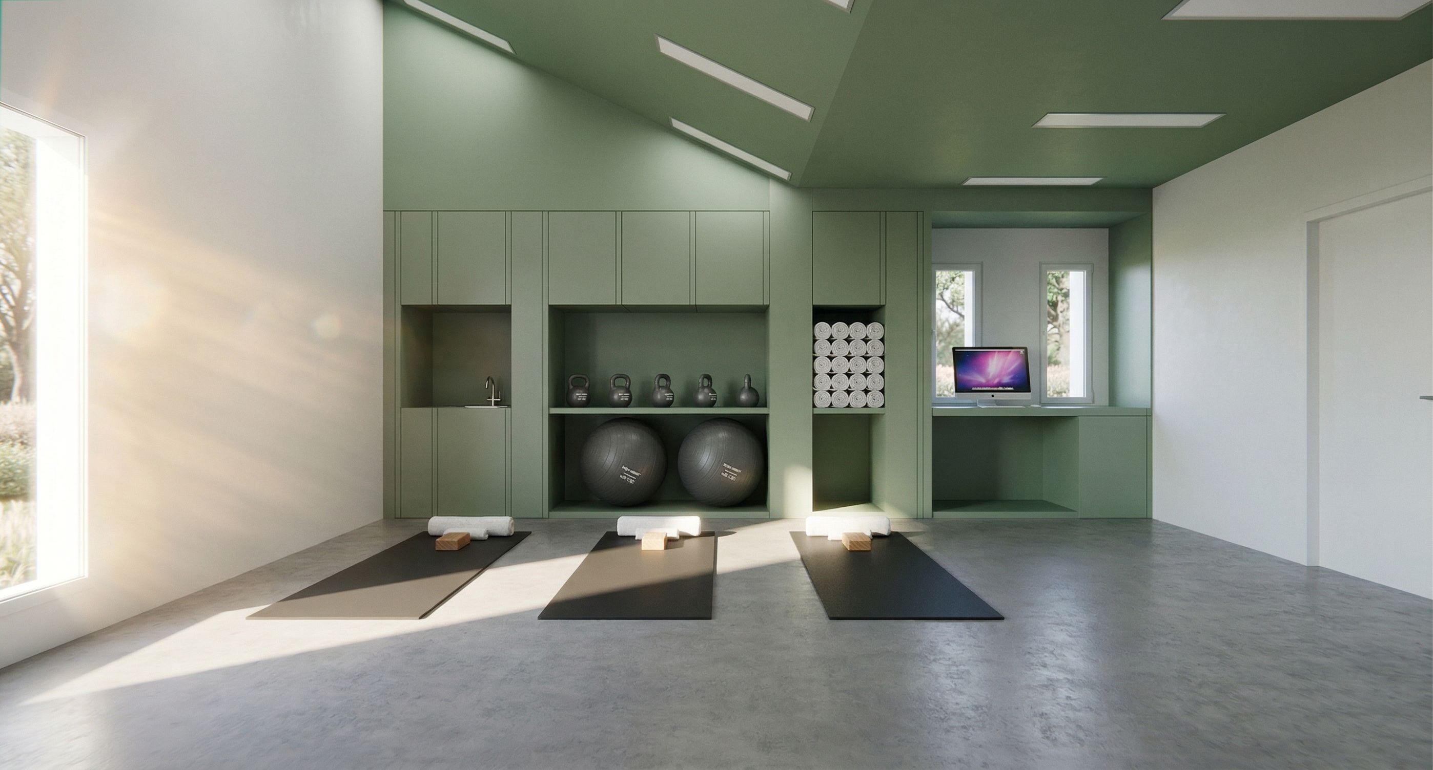 Promptkeep the composition and the objects. I want you to : 1. replace the white triangle located above the green in green; 2. change the green for a sage green., keep exact camera angle