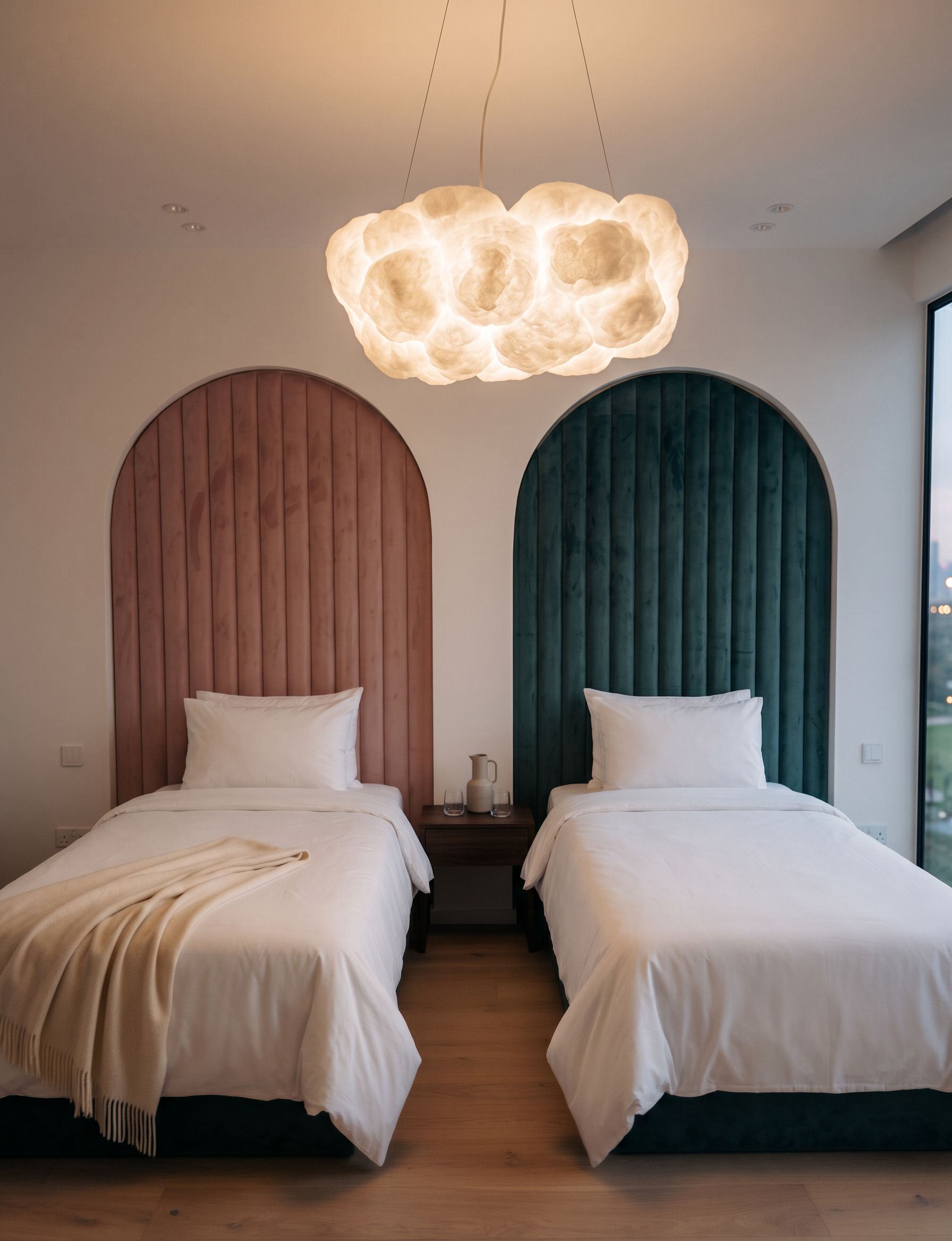Promptcorrect the beds and the lighting of the picture., keep exact camera angle