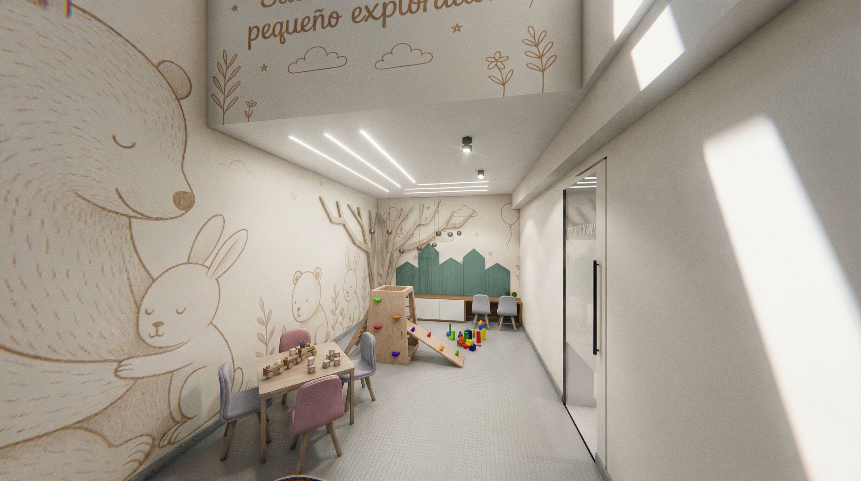 puedes crear esta imagen en una imagen realista el piso es de goma nueva color gris clarita con textura la iluminacion debe ser blanca , keep exact camera angle