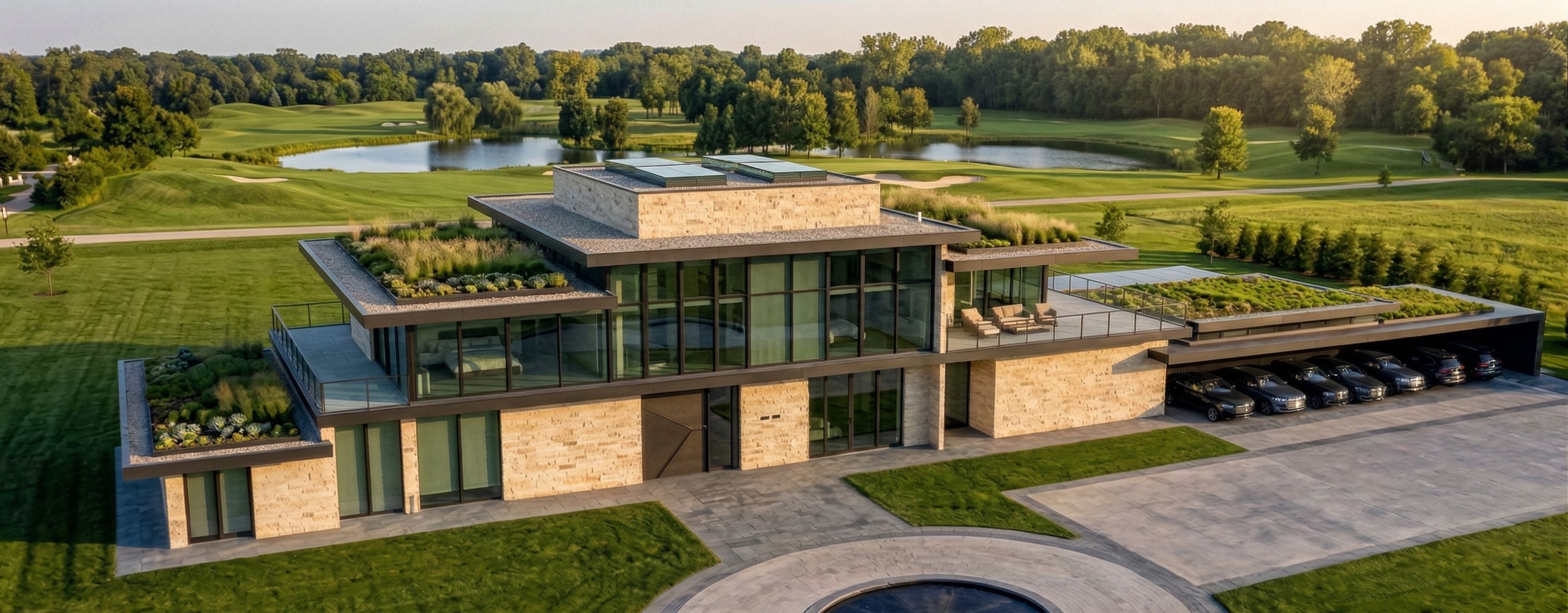 porfavor ayudame a hacer el techo con desnivel de esta casa que se vea mas moderna y casa de lujo en el campo , keep exact camera angle