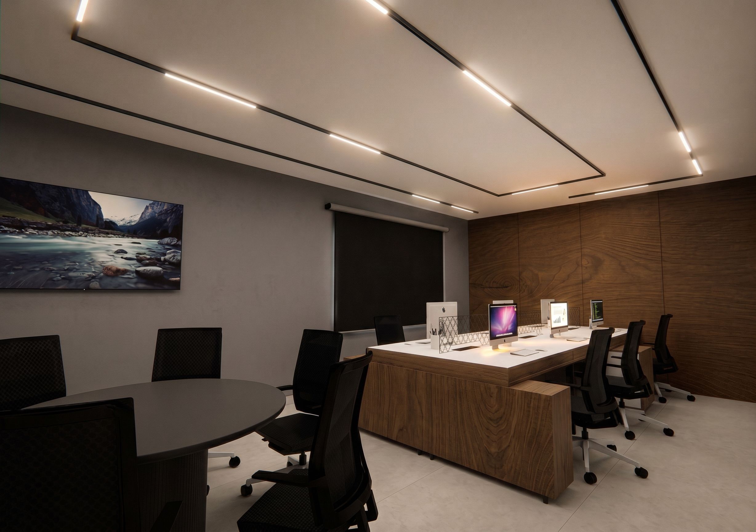 PromptAñade el efecto de la iluminación y el efecto de que las computadoras están encendidas! No cambies ni modifiques más nada , keep exact camera angle
