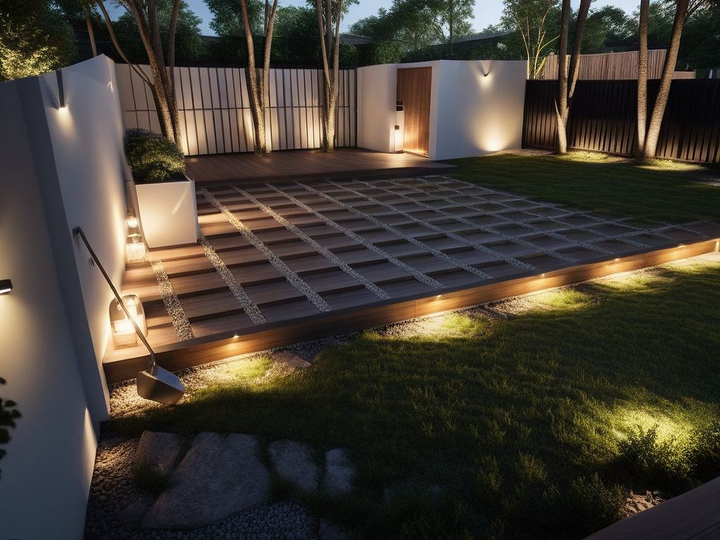 PromptI would like to this space by adding lighting, a lit staircase, an outdoor barbecue, and seating.