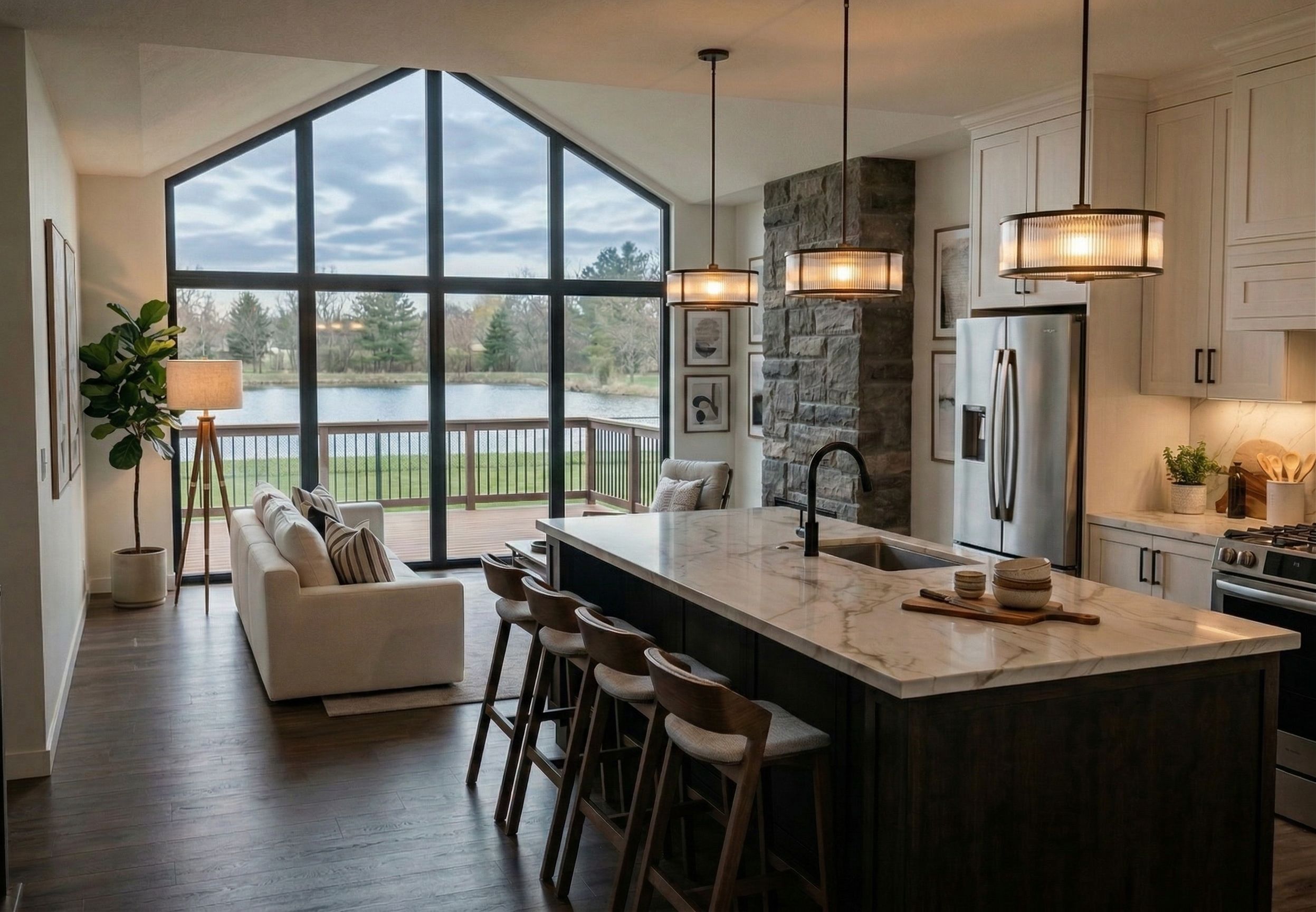 NO DECK STAIRS, FULL DECK RAILING, keep exact camera angle