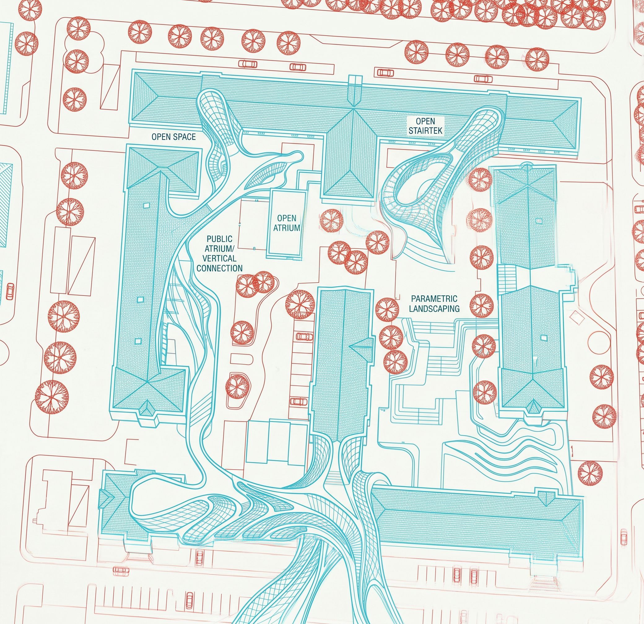 PromptCreate an architectural plan of the roof of the building shown from above in the reference image. The style must match the style of the plan shown in the main image. Adjust the lines from the perspective of the reference image to the overhead camera for the architectural plan., keep exact camera angle