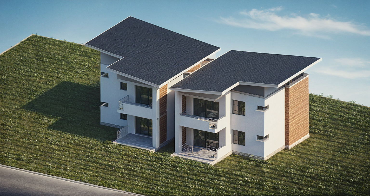 PromptA Mass Housing development complex, include people and vehicles depicting life?