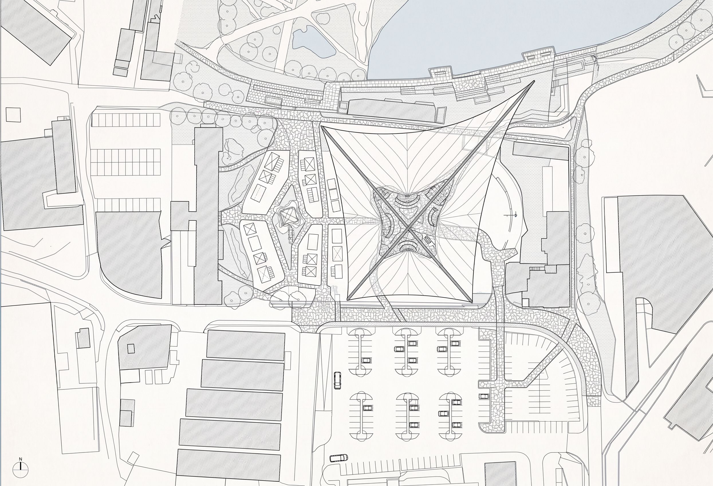 Promptdo this without texts and do also pathways at this market plaza and promenade, keep exact camera angle