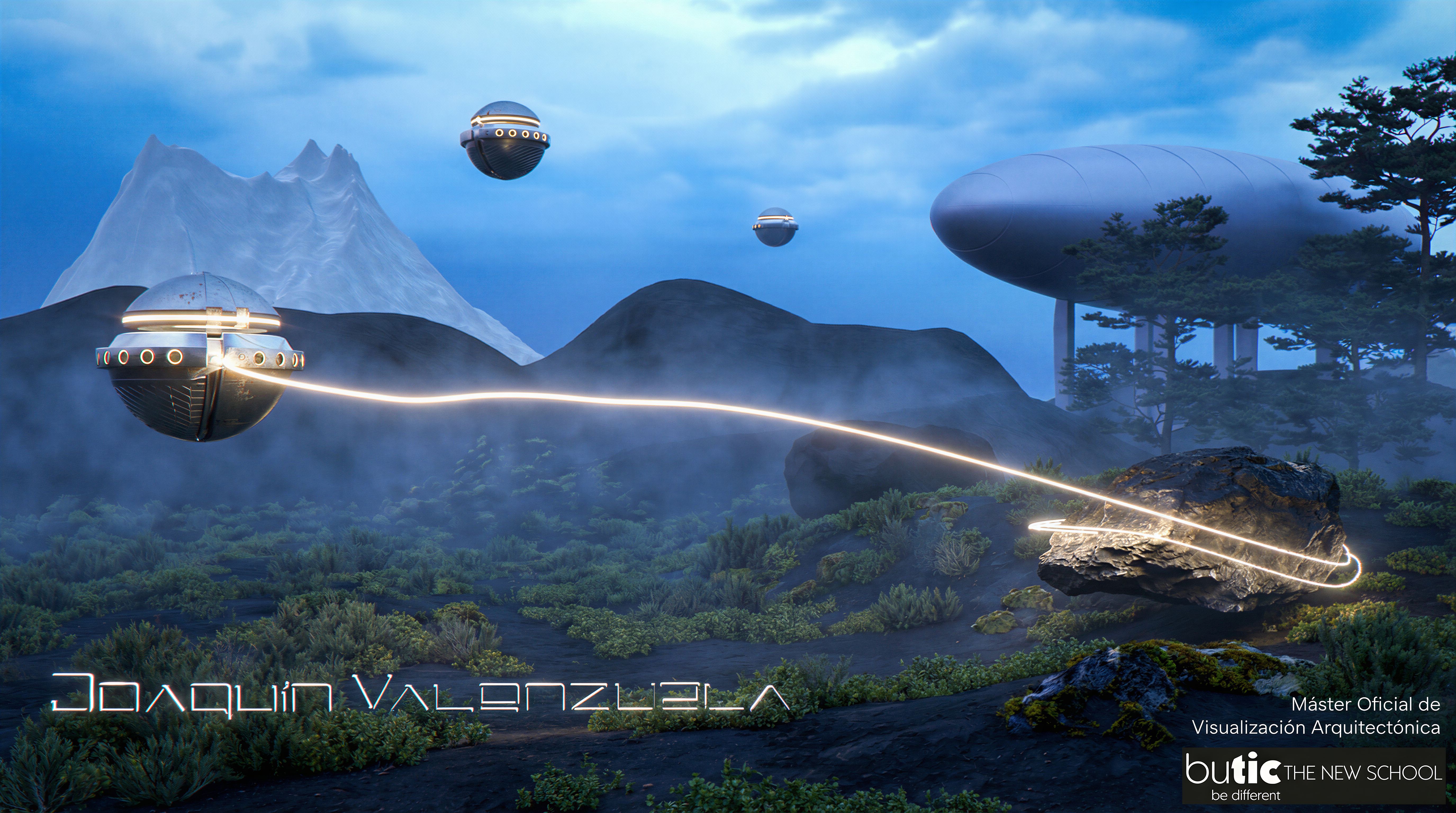 Promptañade más realismo a la nave con patas. y añádele ventanas circulares por la línea central de la nave. añade otras dos naves al fondo volando en el cielo como la que se ven en las imágenes de referencia, keep exact camera angle