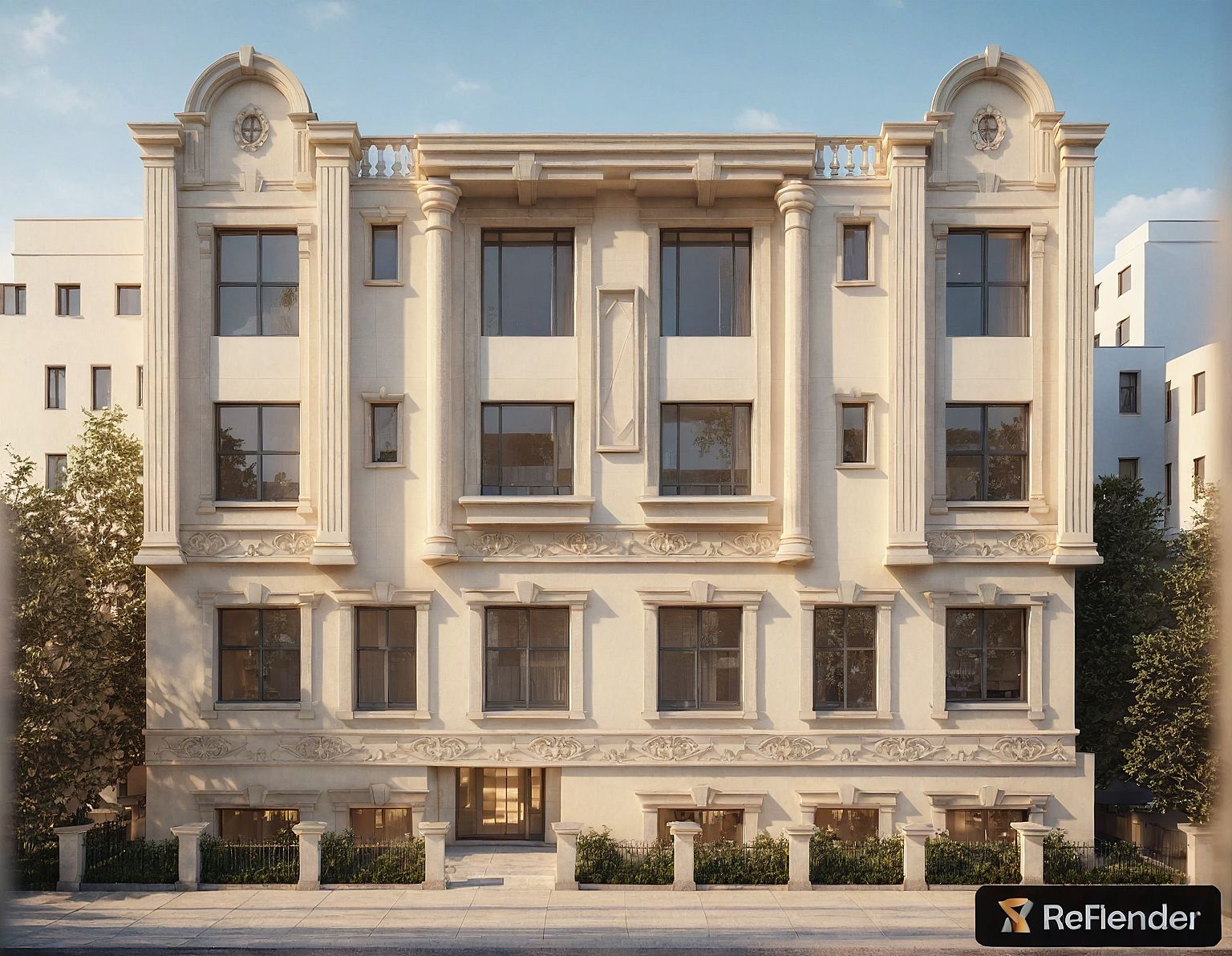 Modern evening light beige building