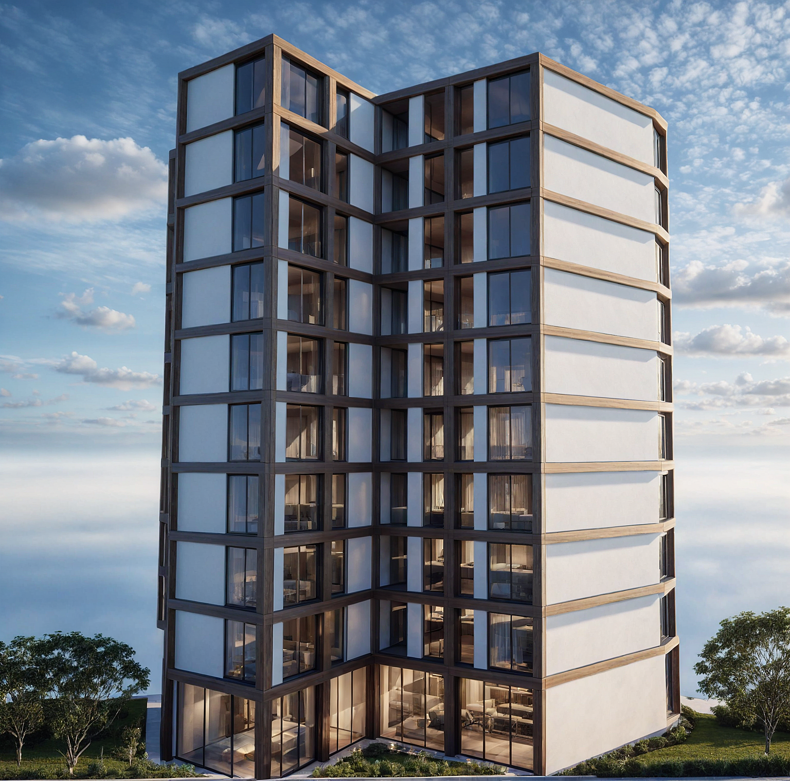 Promptmodern architecture, modern facade, luxury apartments, landscape, sky