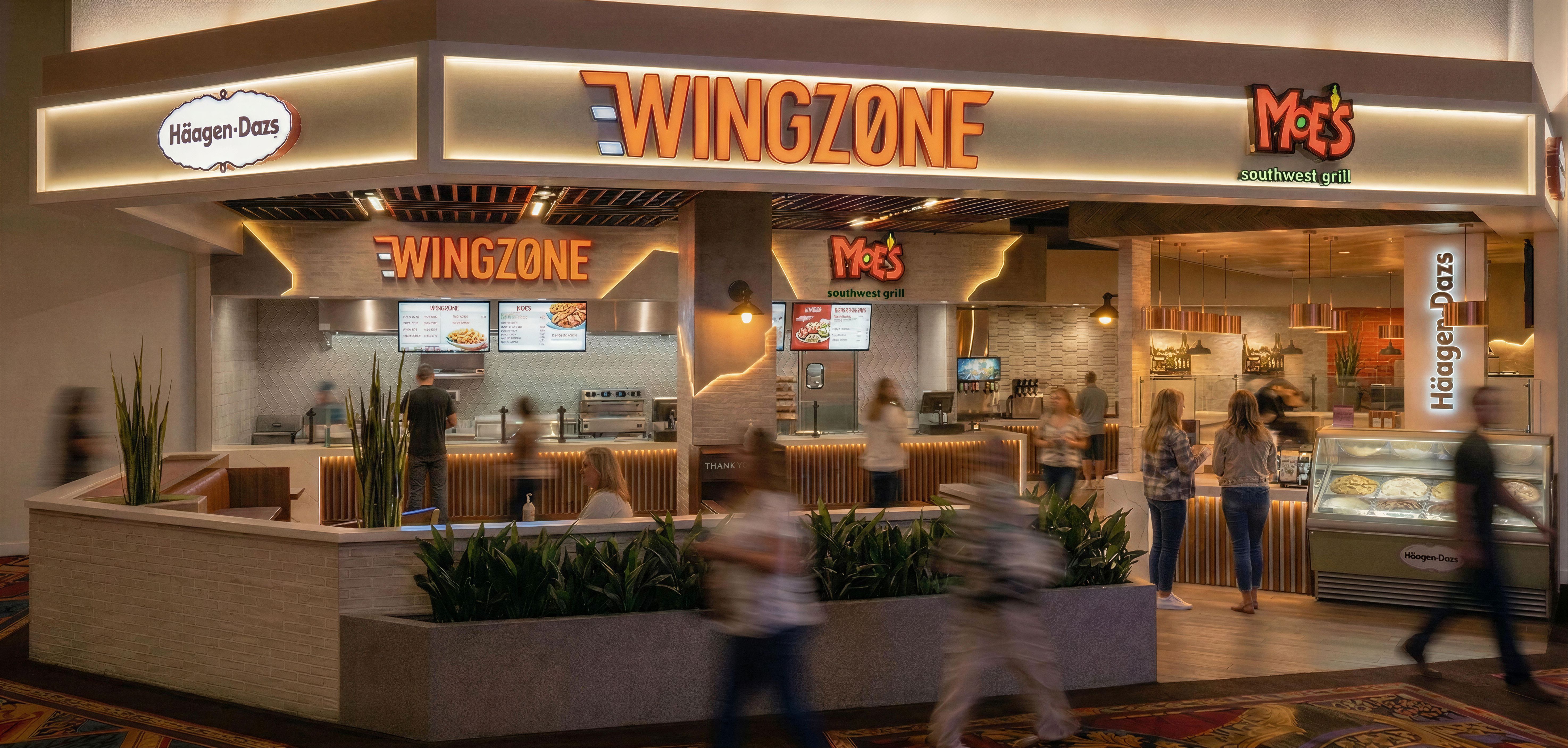 PromptTheres a wall behind the Haagen Dazs that needs to be lowere by half the height and then put an 18" tall glass guard smilar to the other counters. Keep every other element in the image exactly the same., keep exact camera angle