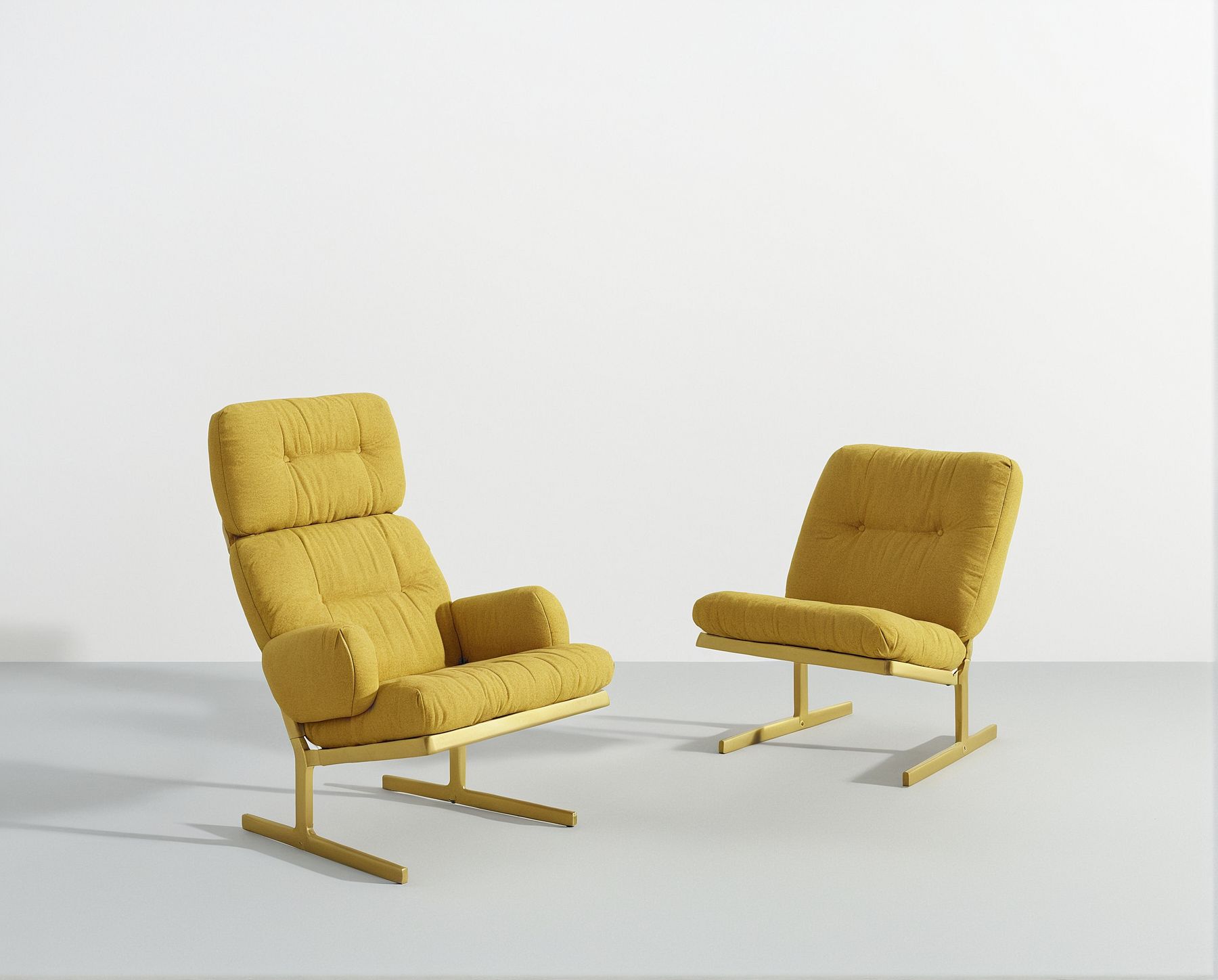 PromptCreate a realistic image of a lounge chair with a sleek metal frame and a soft, comfortable cushion for both the seat and backrest. The cushion should be upholstered in a fabric that highlights the detailed contours and shape of the padding, emphasizing its plush and inviting texture