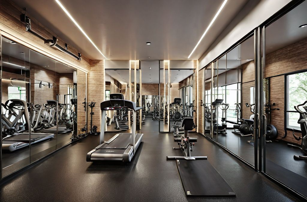 A MODERN GYM, WITH MIRROS ON THE LEFT AND A OPENED SPACE ON THE RIGHT