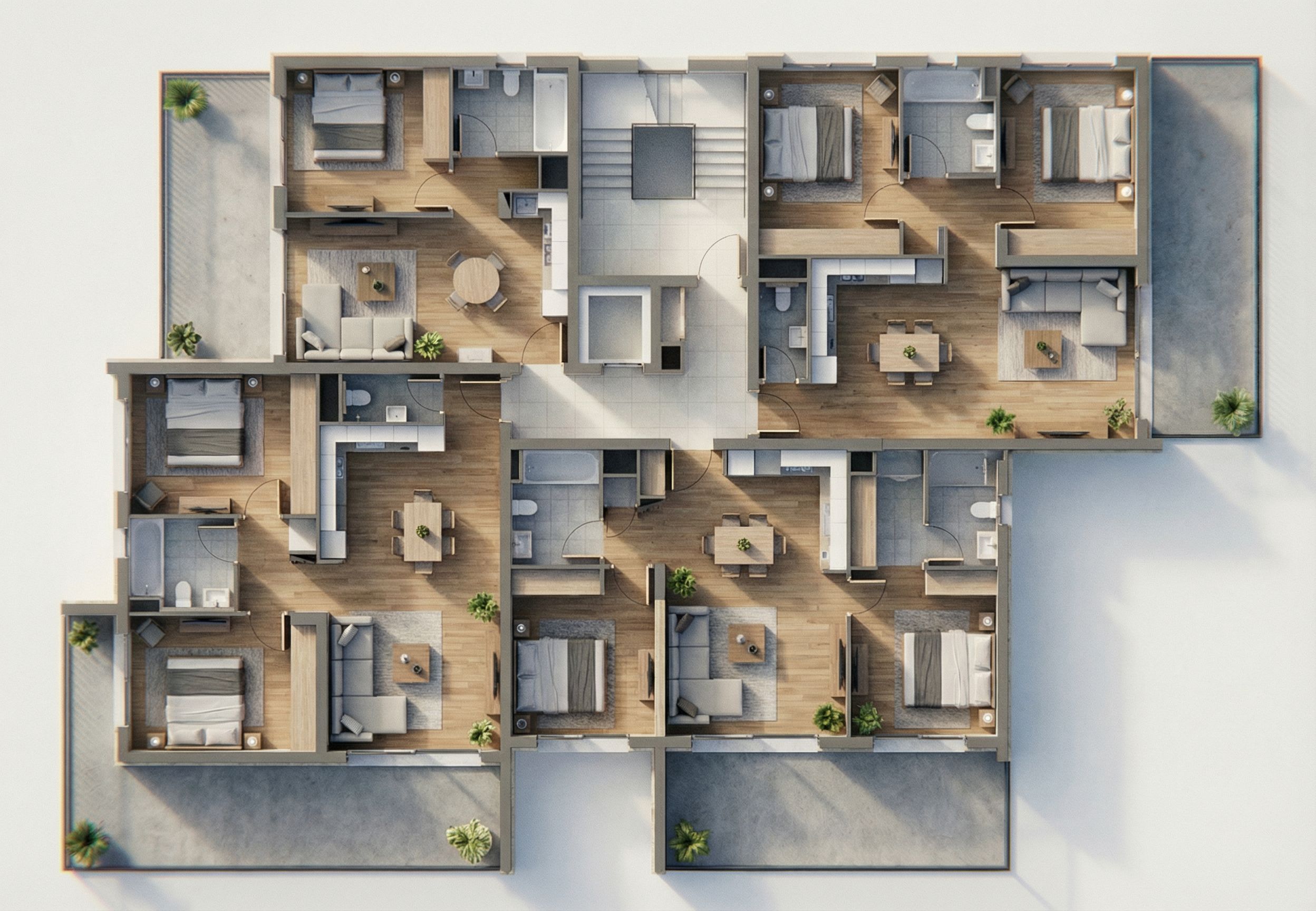 Remove all architectural lines, dimensions and text, keep exact camera angle