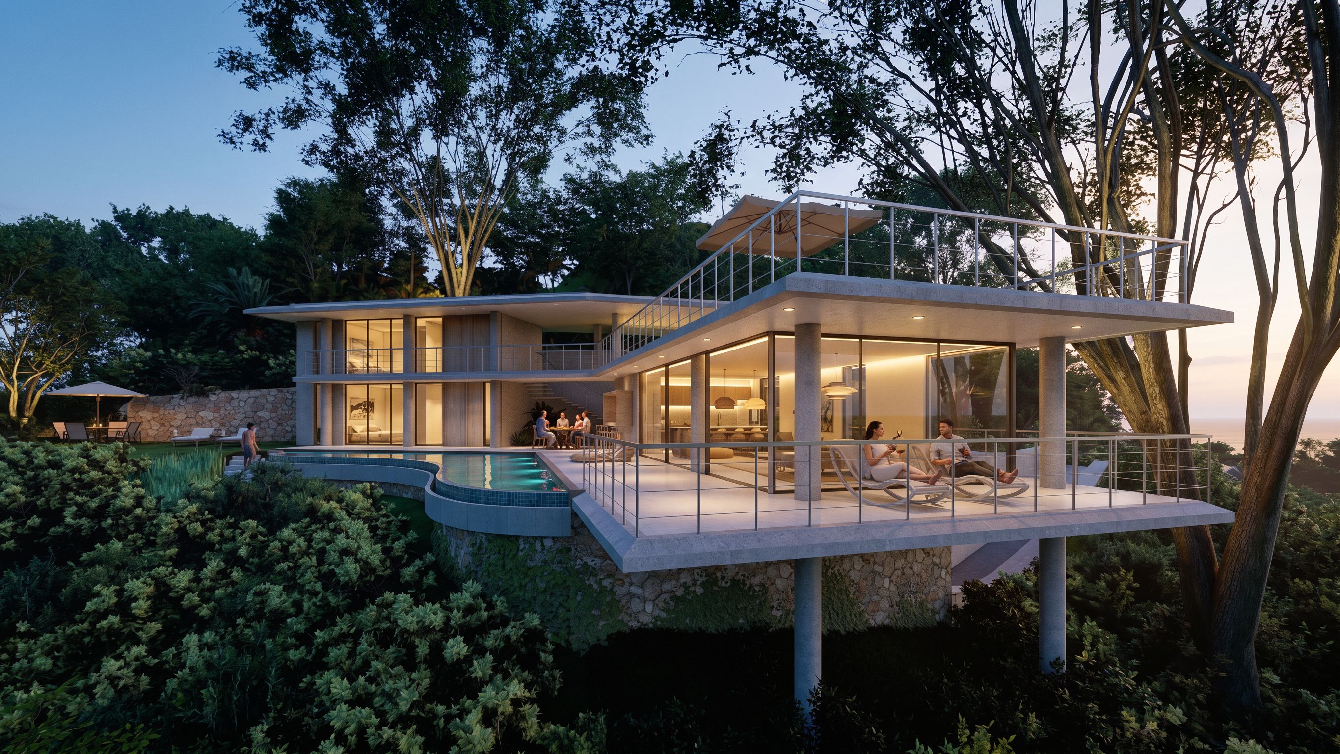 Promptevening beach house . realistic people using the house, keep exact camera angle