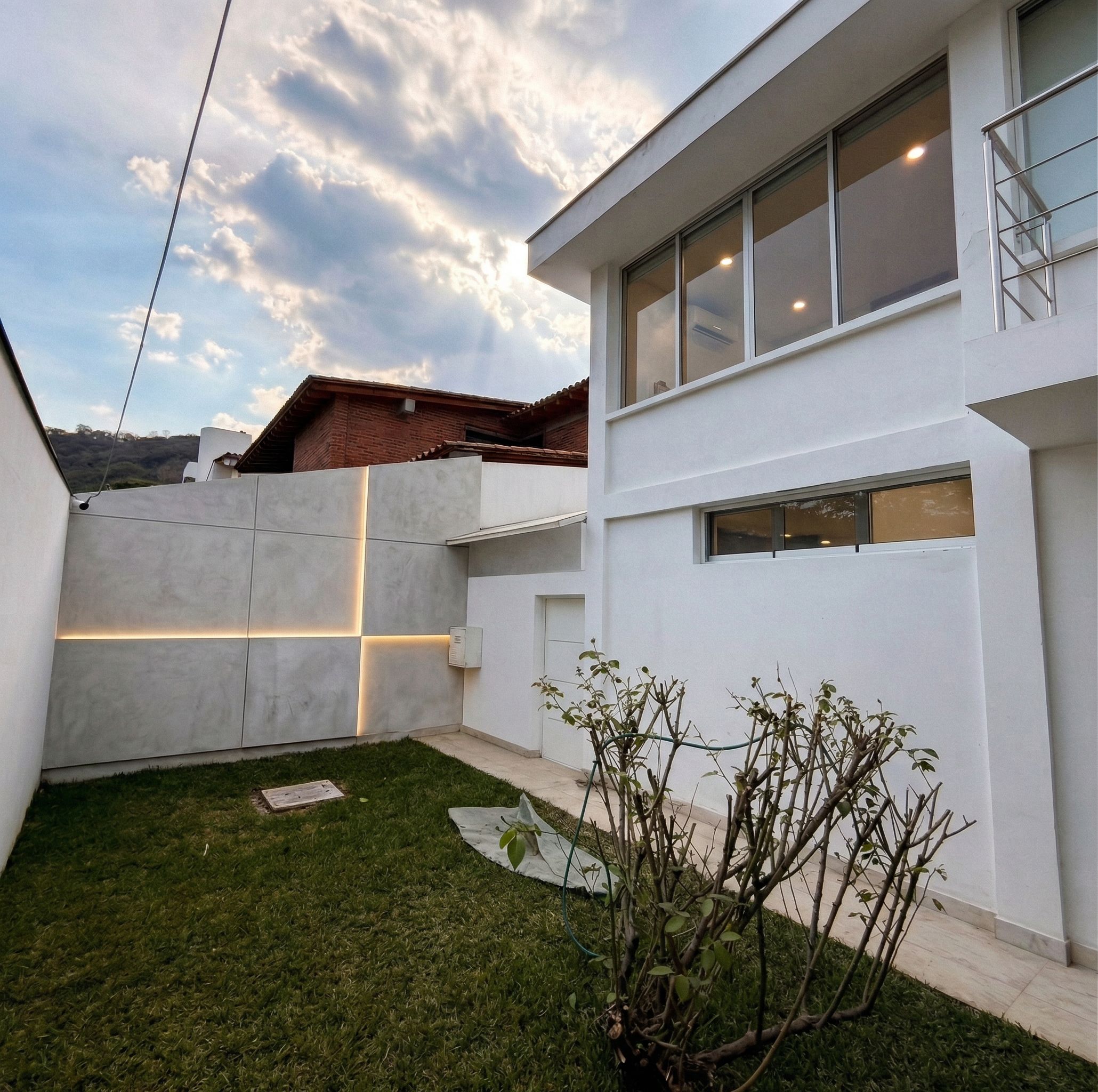 PromptAyúdame a hacer una propuesta de revestimiento solo para la pared del fondo con porcelanico que imite a microcemento, no modifiques nada te adjunto referencias del revestimiento las demás paredes quedarán blancas lisa , keep exact camera angle