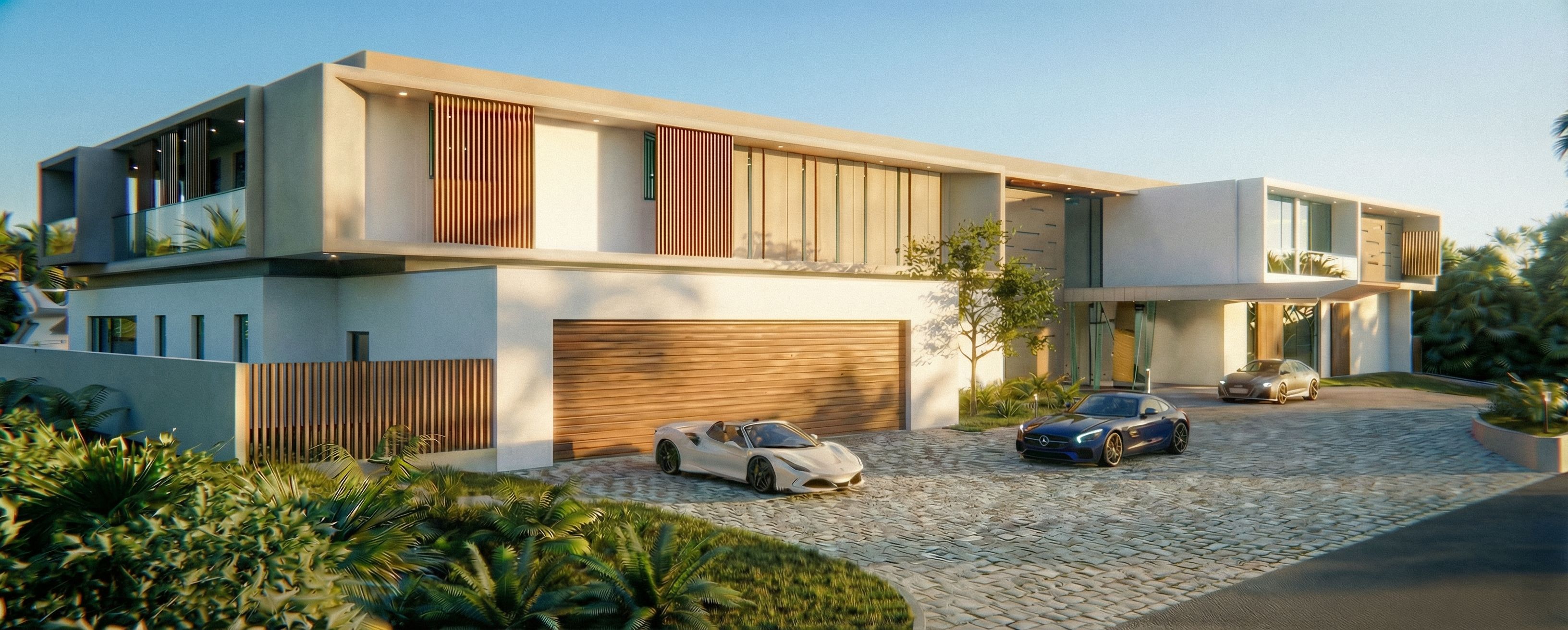 PromptCAMBIAR EL COLOR DE LAS PAREDES DE LA FACHADA DEL PRIMER PISO POR UN COLOR BLACO, keep exact camera angle