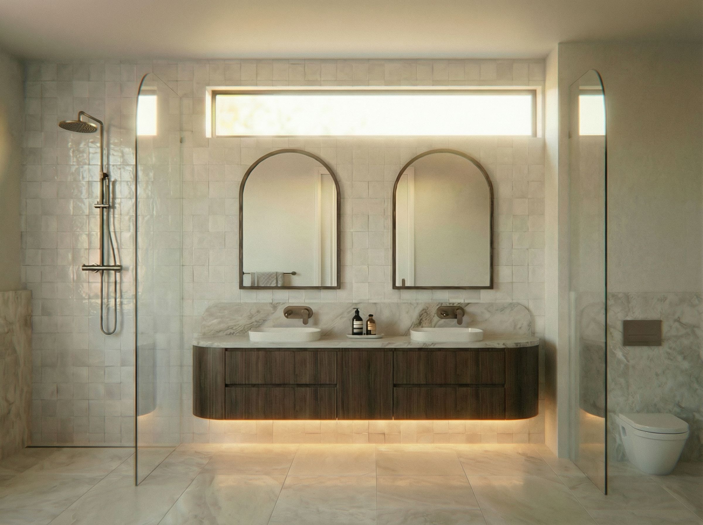 Prompttaj mahal stone benchtop. add strip lighting under vanity, keep exact camera angle