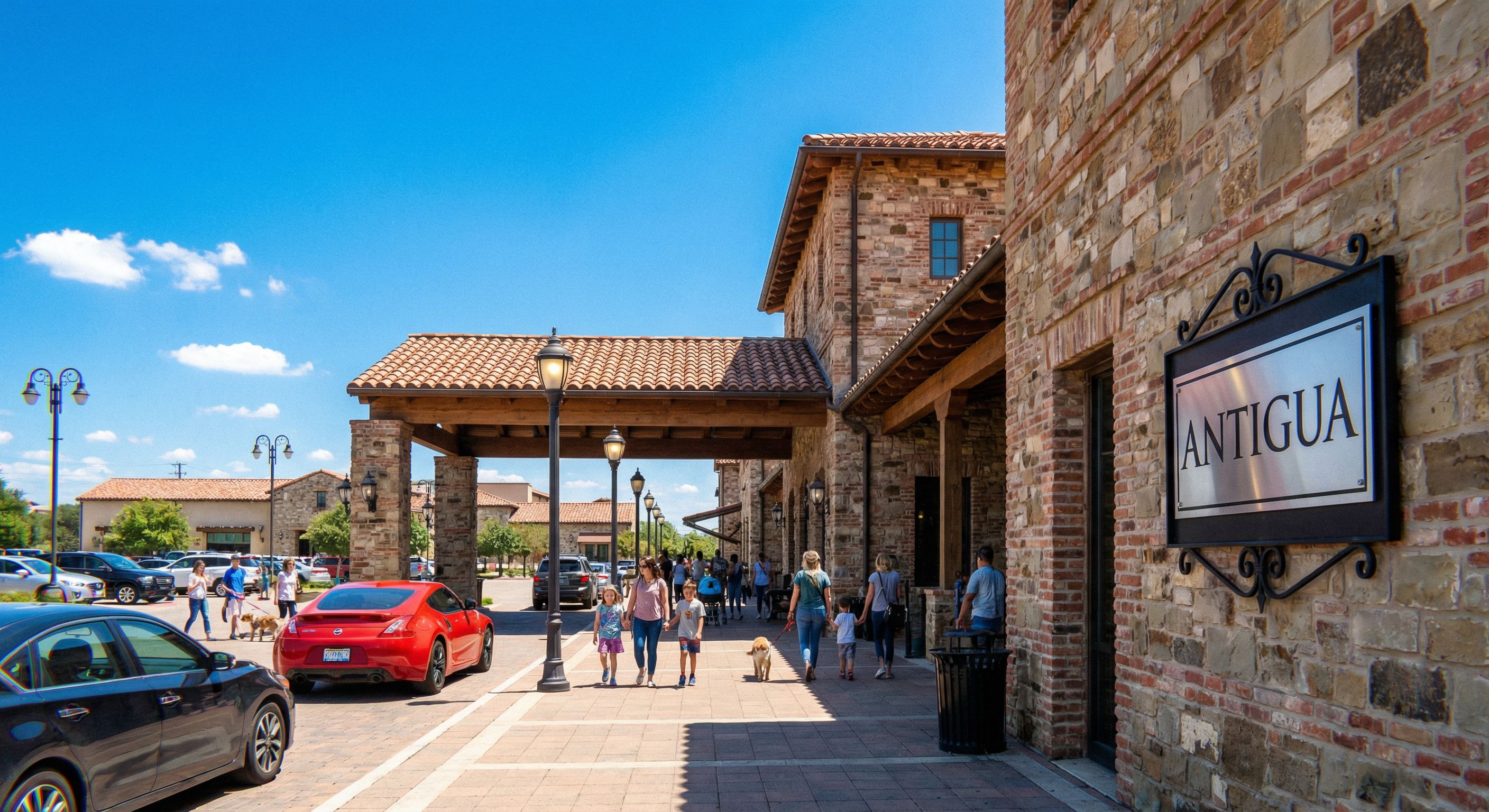 PromptCIELO CLARO CON POCAS NUBES, PERSONAS CAMINADO, ALGUNAS CON MASCOTAS Y NINOS, VEHICULOS MODERNOS, NOMBRE ANTIGUA EN ACERO BRILLANTE SOBRE PLACA DE HIERRO NEGRO, FAROLES CIRCUNDANDO LOS ANDENES, , keep exact camera angle