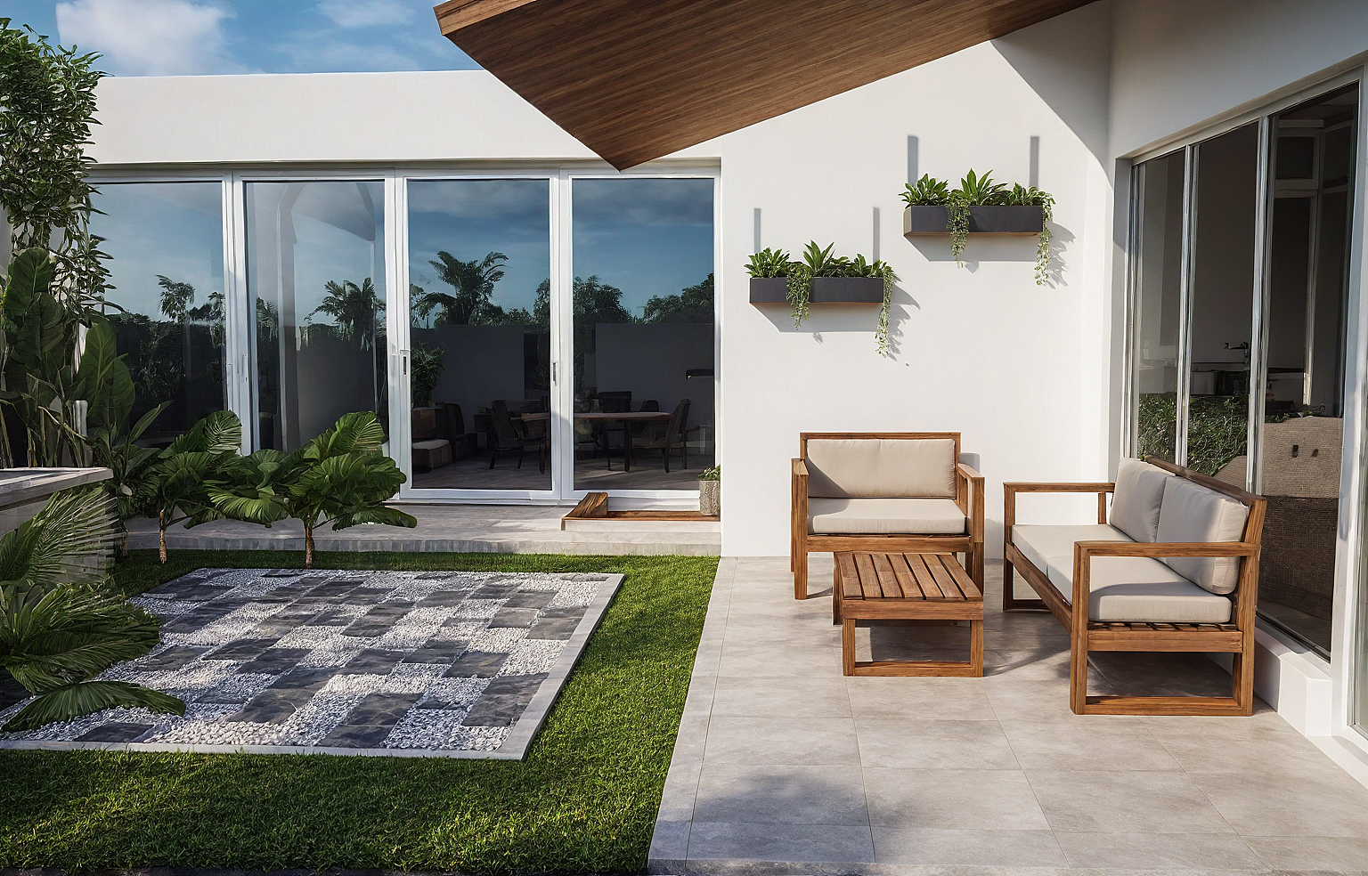 TROPICAL BACKYARD TERRACE WITH OUTDOOR SOFA