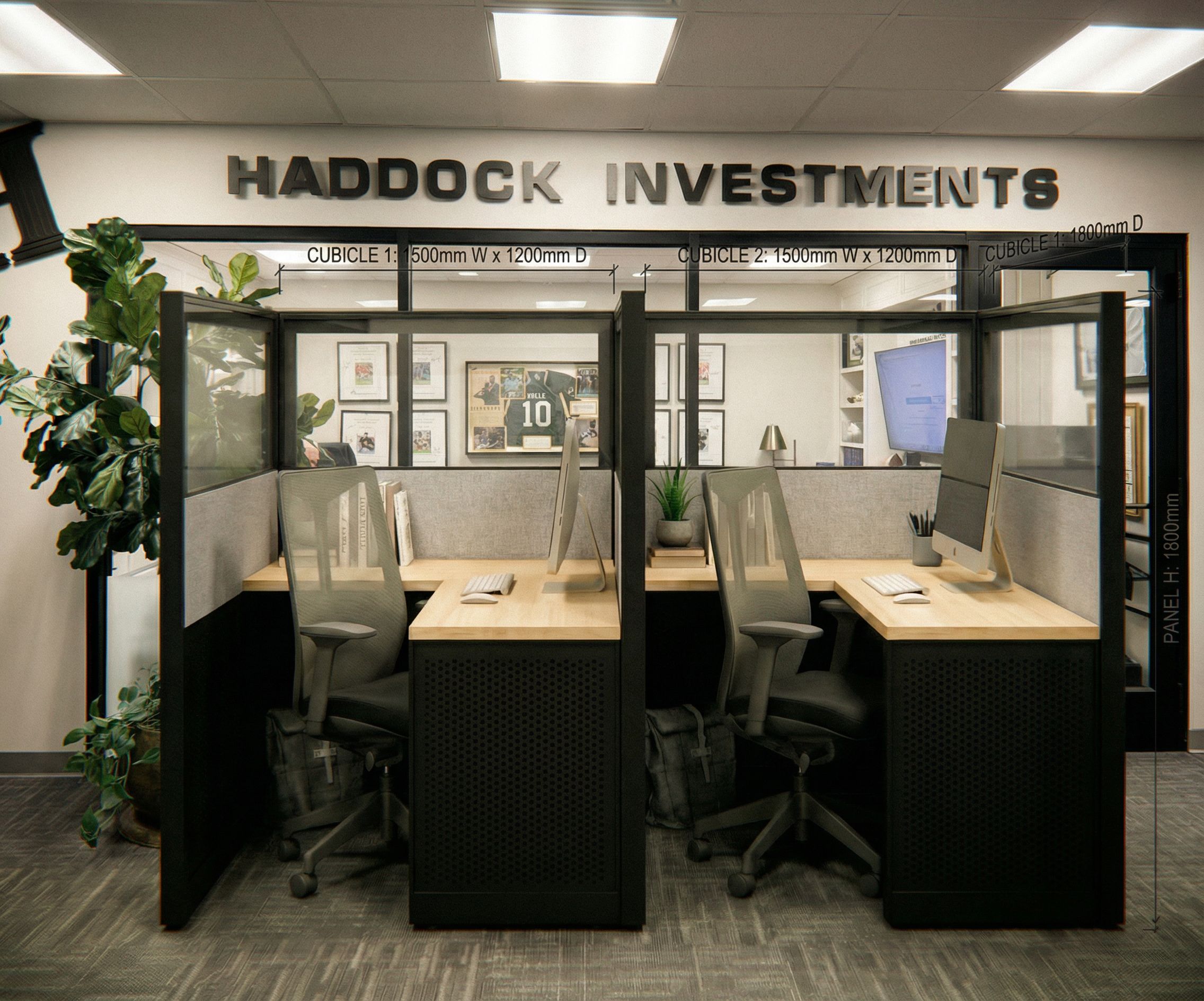 PromptInsert cubicles in Reference 1 to the outside of the glass and centered., keep exact camera angle