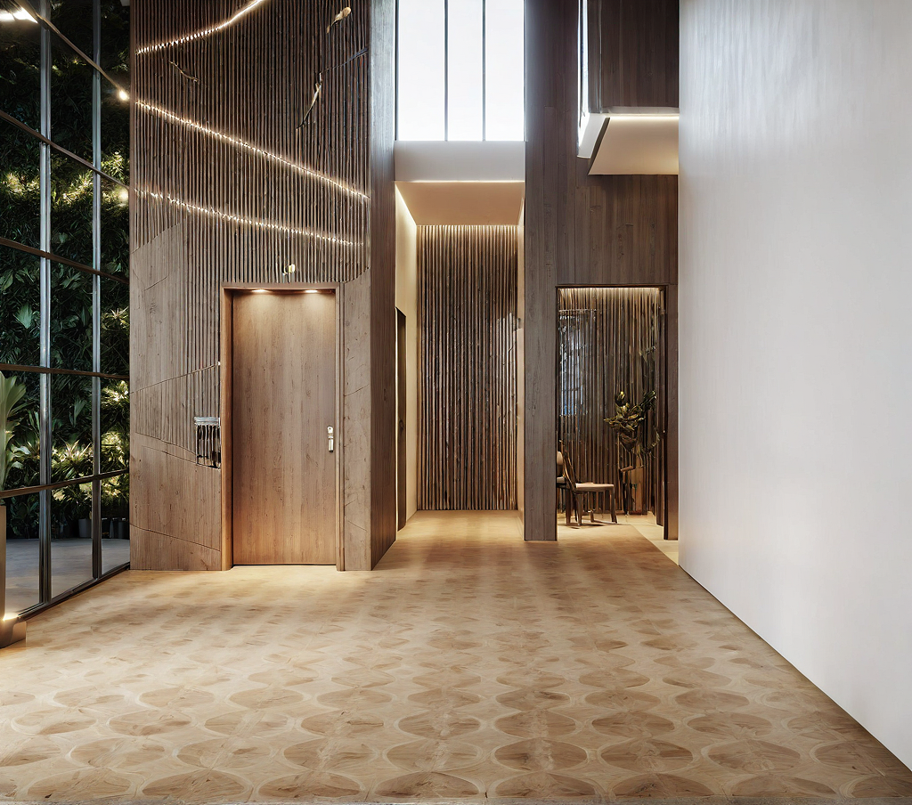 Promptcreate a realistic image of a contemporary entrance hall, with some modern chairs