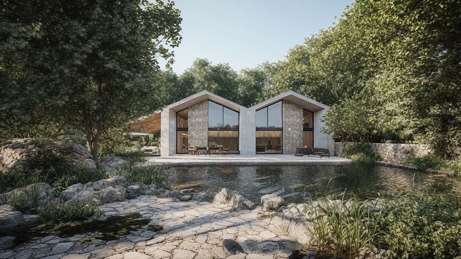 PromptREFINE TEXTURES, ADD WATER TEXTURE IN A REDUCED OPPACITY OVER THE TOP OF THE STONEWORK POND IN THE BOTTOM LEFT CORNER