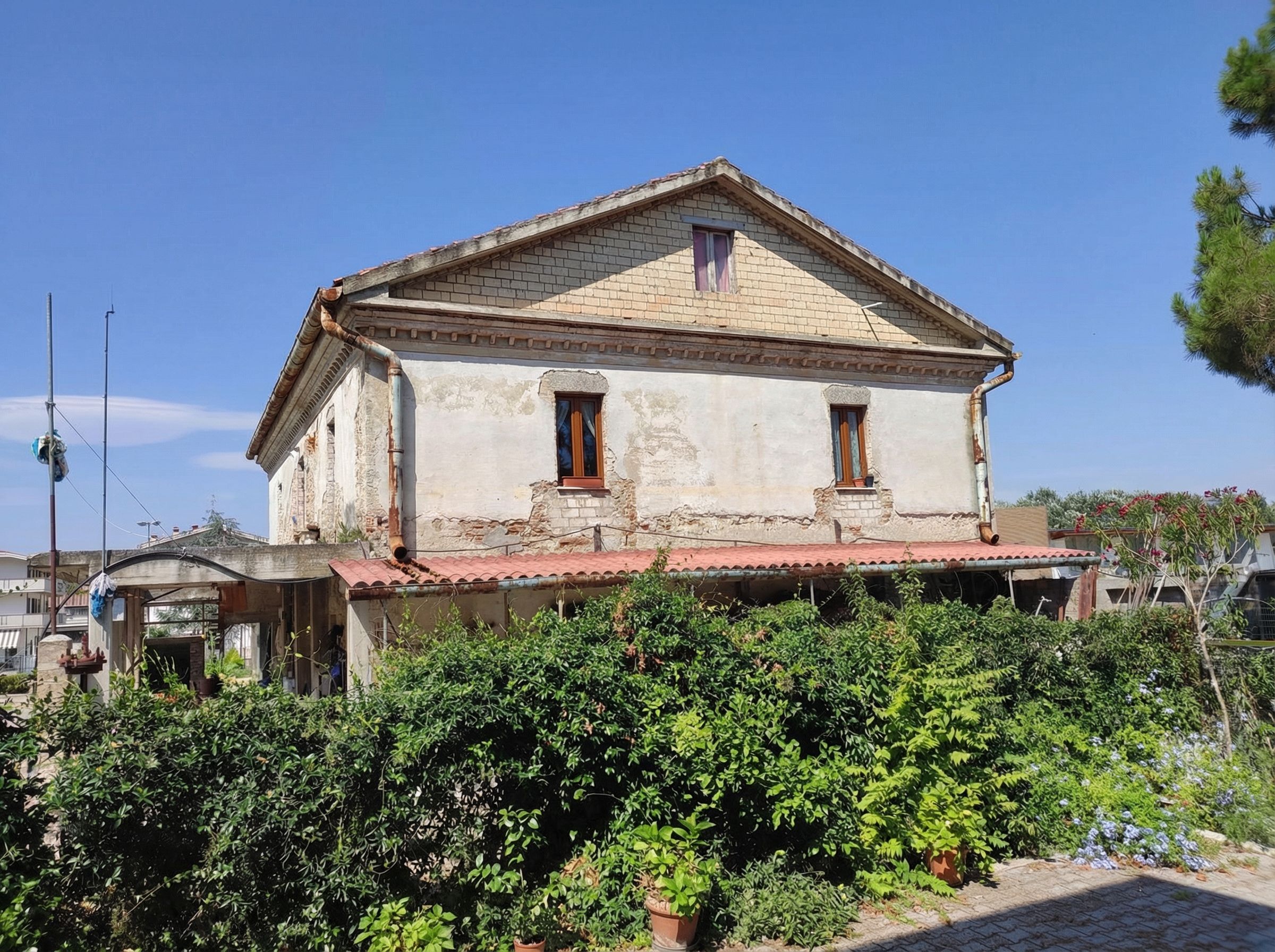 architectural exterior rendering, render this 3D mass into photorealistic rendering, ADD TWO OLD DEGRADED DOWNPIPE ON THE SIDES OF THE HOUSE AND A OLD DEGRADED GUTTER ON THE LEFT ROOF OF THIS HOUSE, keep exact camera angle, high quality, professional, detailed scene