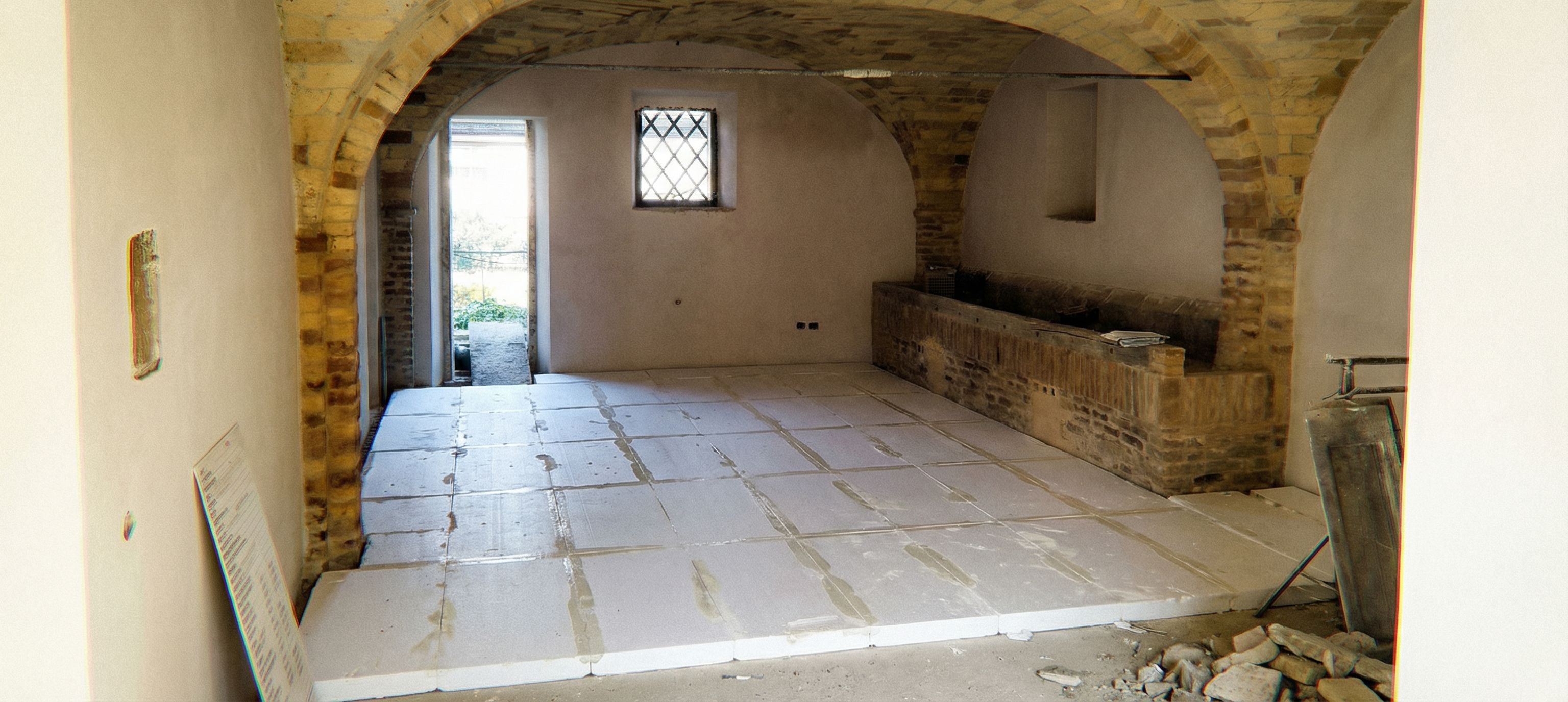 Place polystyrene insulation panels on the floor, glued together. They should be precisely 60, arranged in a 10x6 grid., keep exact camera angle