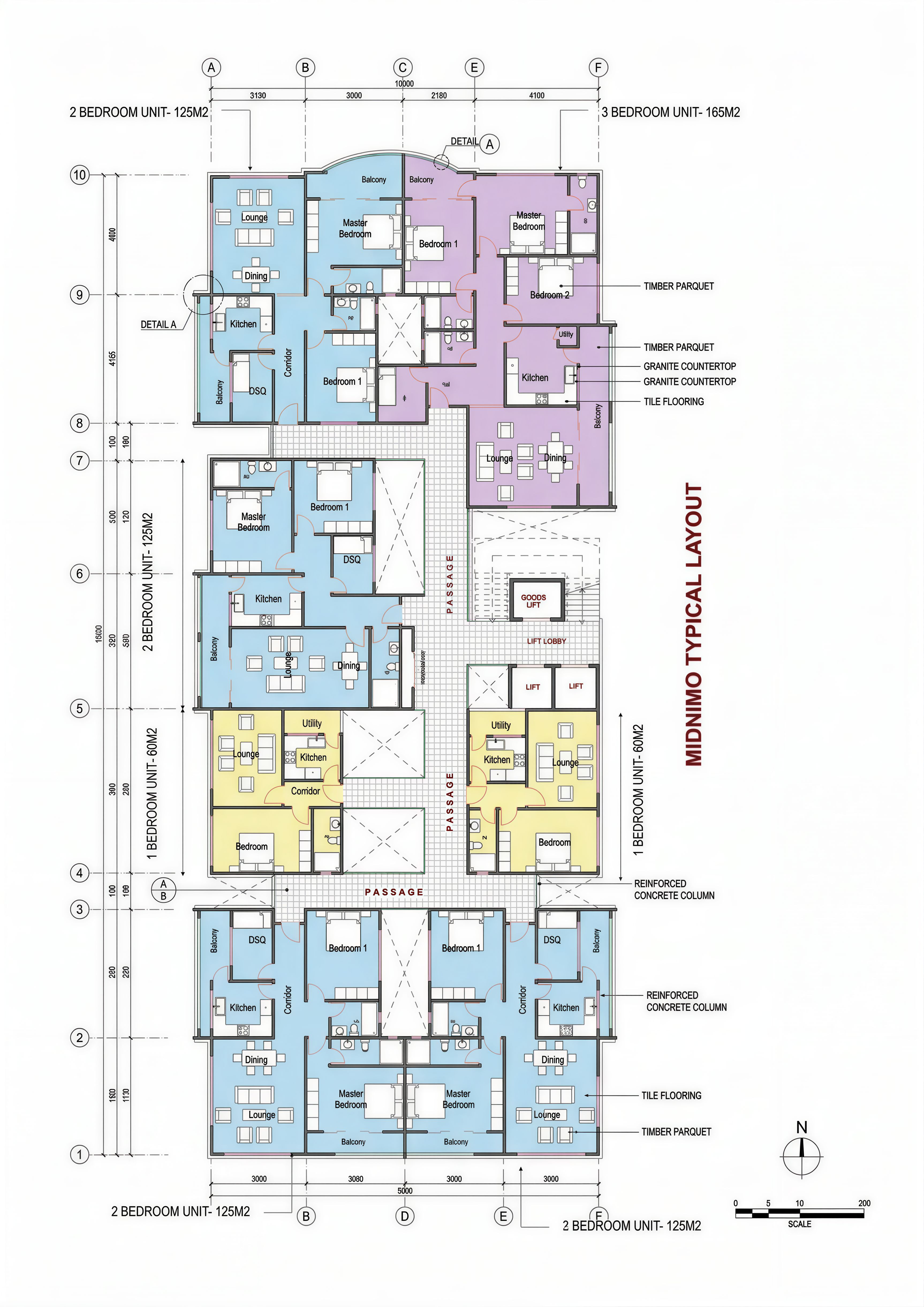 MAKE A COLOURED LAYOUT WITH CLEAR PARTITIONS AND FURNITURE CLEARLY INDICATED WITH HAIRLINES IN BLACK. DIFFERENT COLOURS TO REPRESENT DIFFERENT UNITS., keep exact camera angle