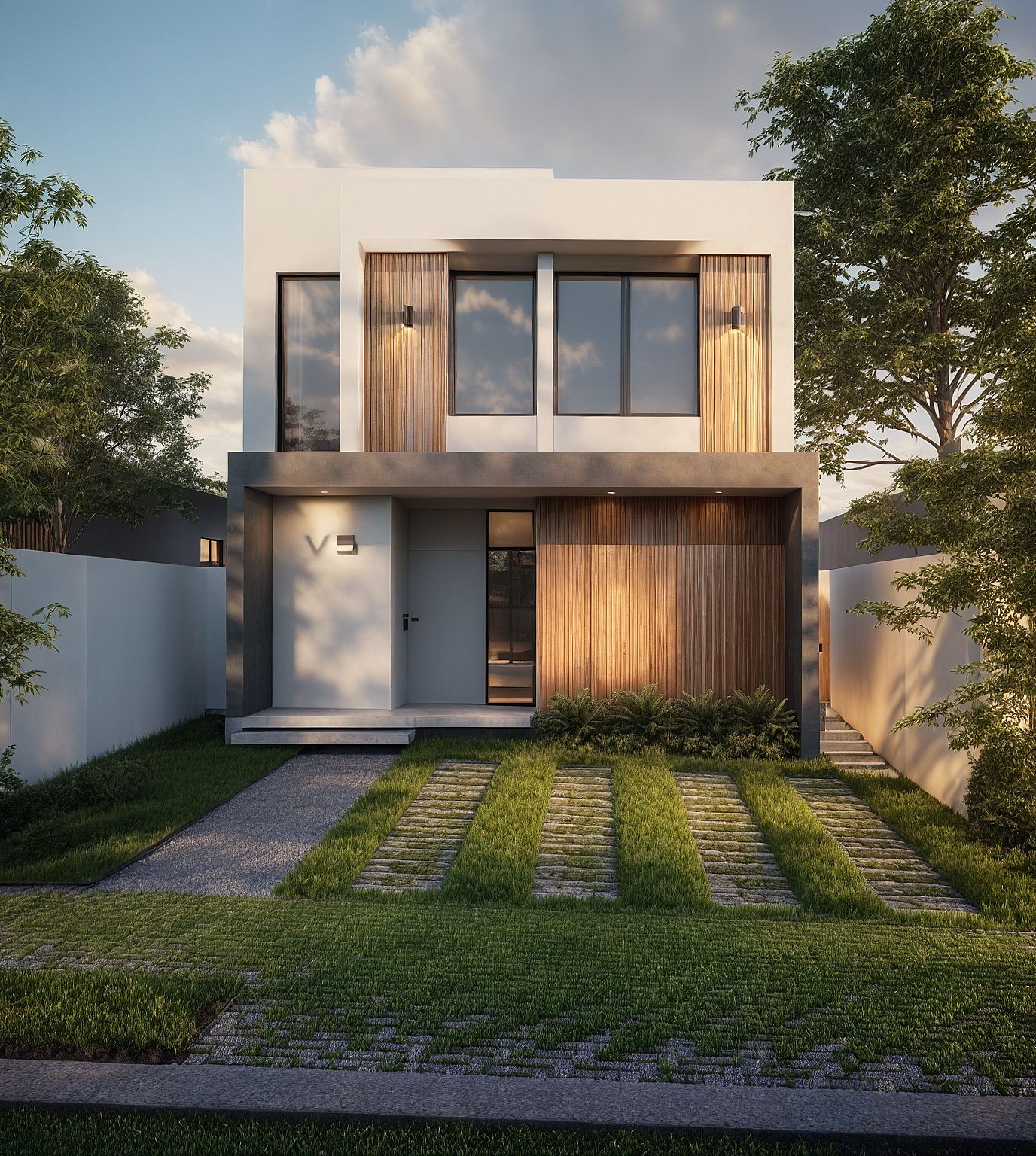 PromptKeep the exactly and identical structural and architectural design of the model, with a slightly sunrise. And short grass