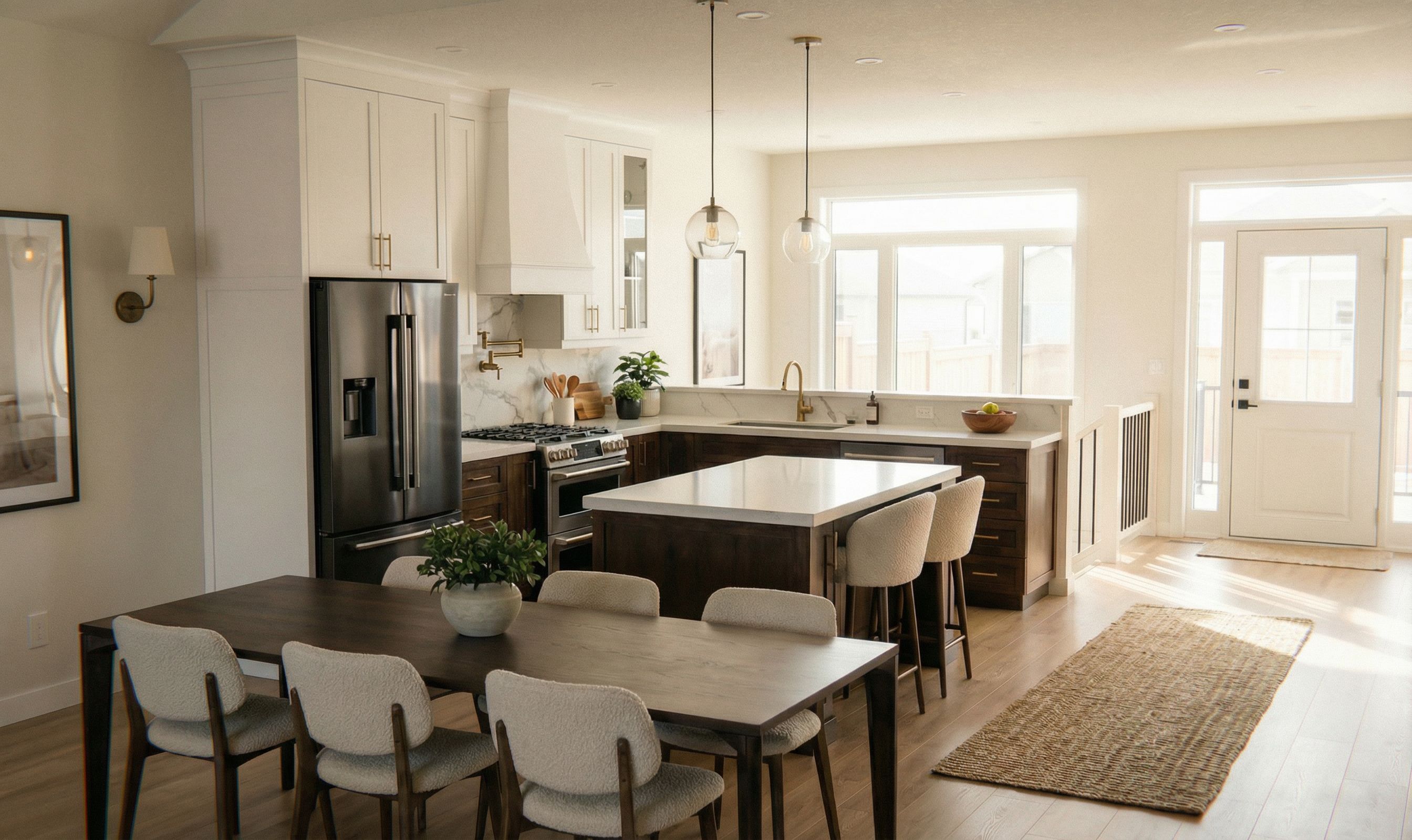PromptSHOW ME AN ANGLED KITCHEN VIEW, WITH THE SAME FURNITURE IN THE REFERENCE PHOTO, keep exact camera angle