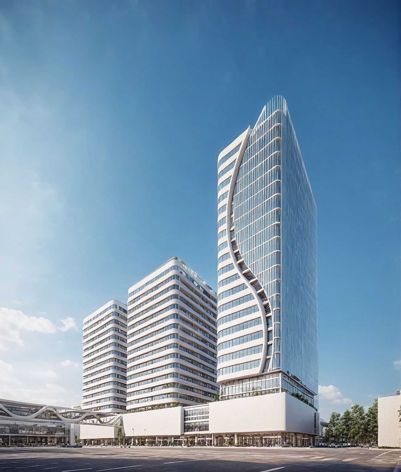 SHOPPING MALL WITH BRIDGE, APARTMENT AND OFFICE BUILDING COMPLEX