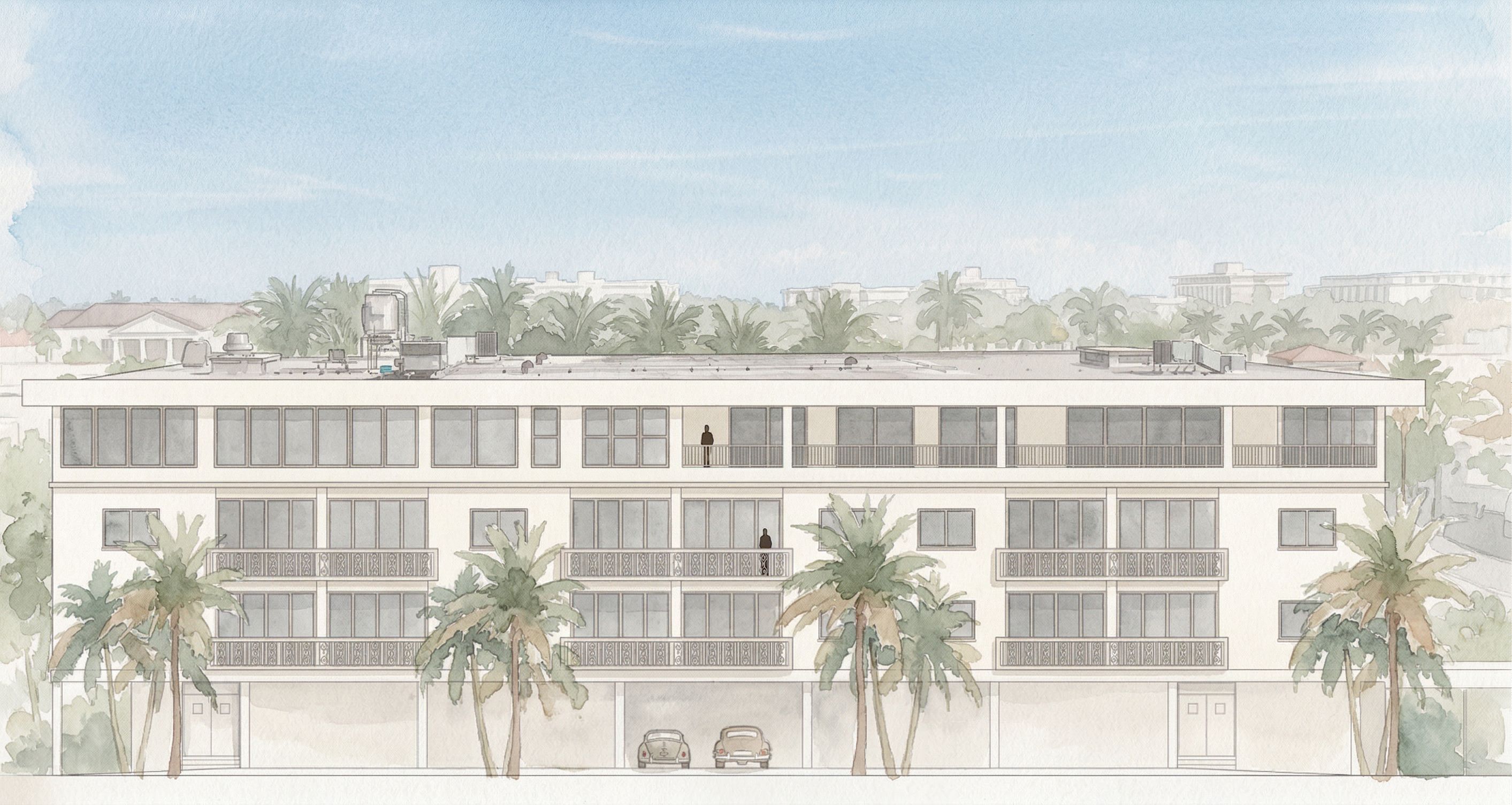 Soft watercolor architectural presentation