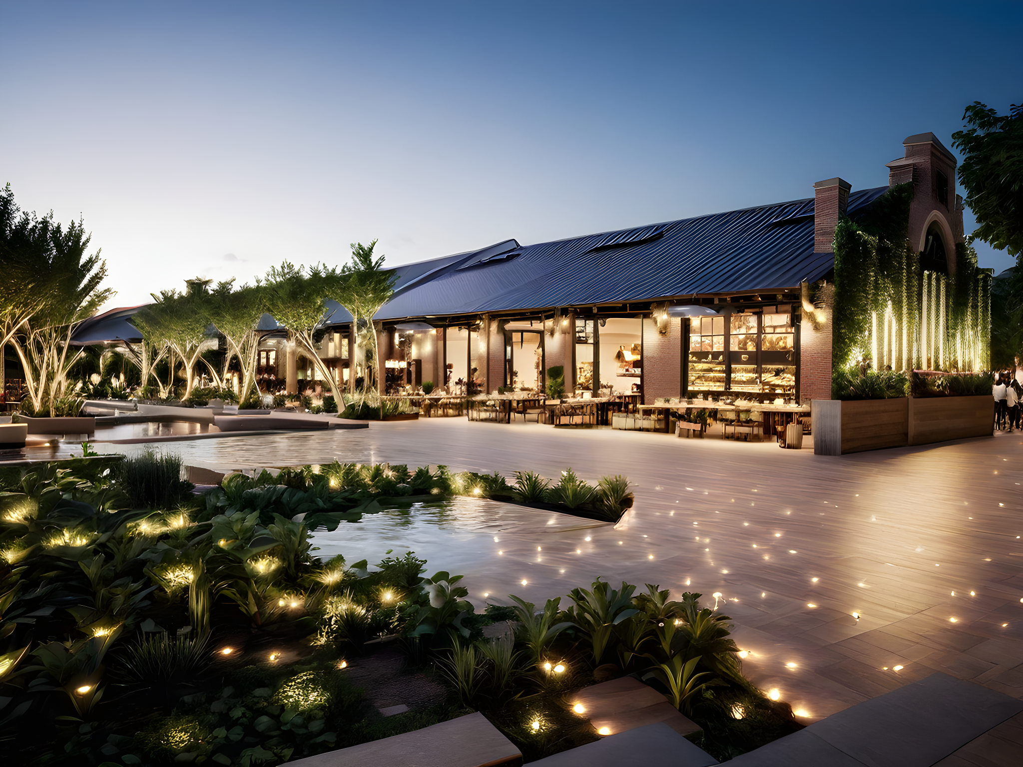 food hall, amazing garden, same construction materials, same facade, amazing terrace