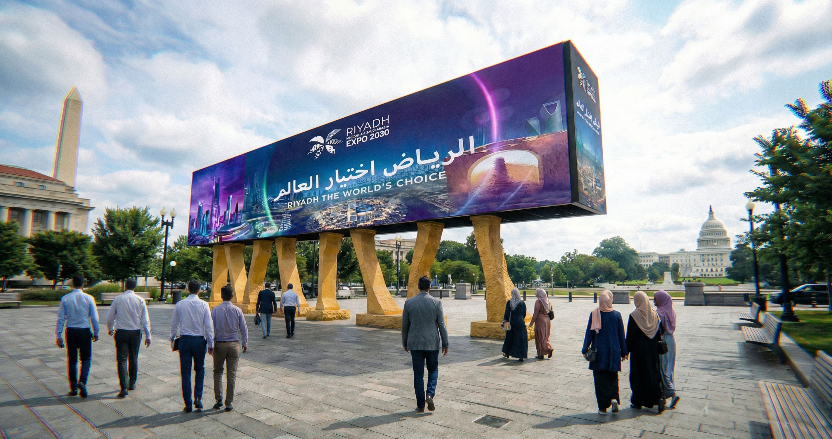 Prompt men walking & few american muslims ladies back side , keep exact camera angle