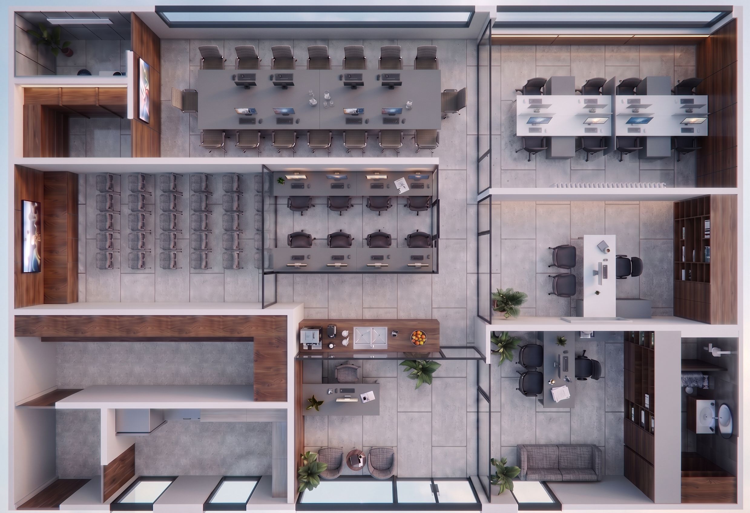 PromptPuedes cambiar los colores de los muebles de la oficina que está en la parte superior derecha, el tope es blanco y el mueble bajo gris , keep exact camera angle
