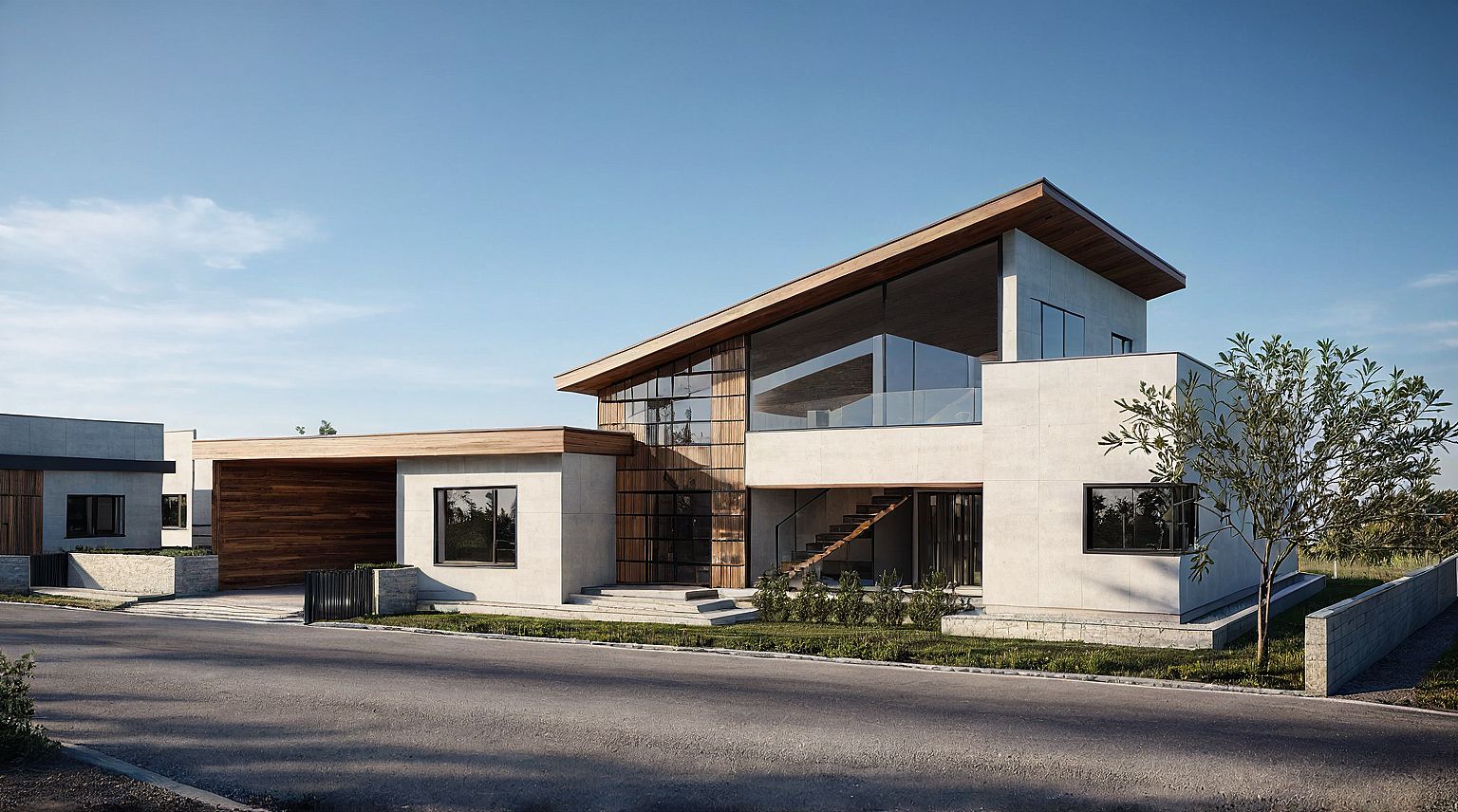 outside is road. wood hpl, blsck glases