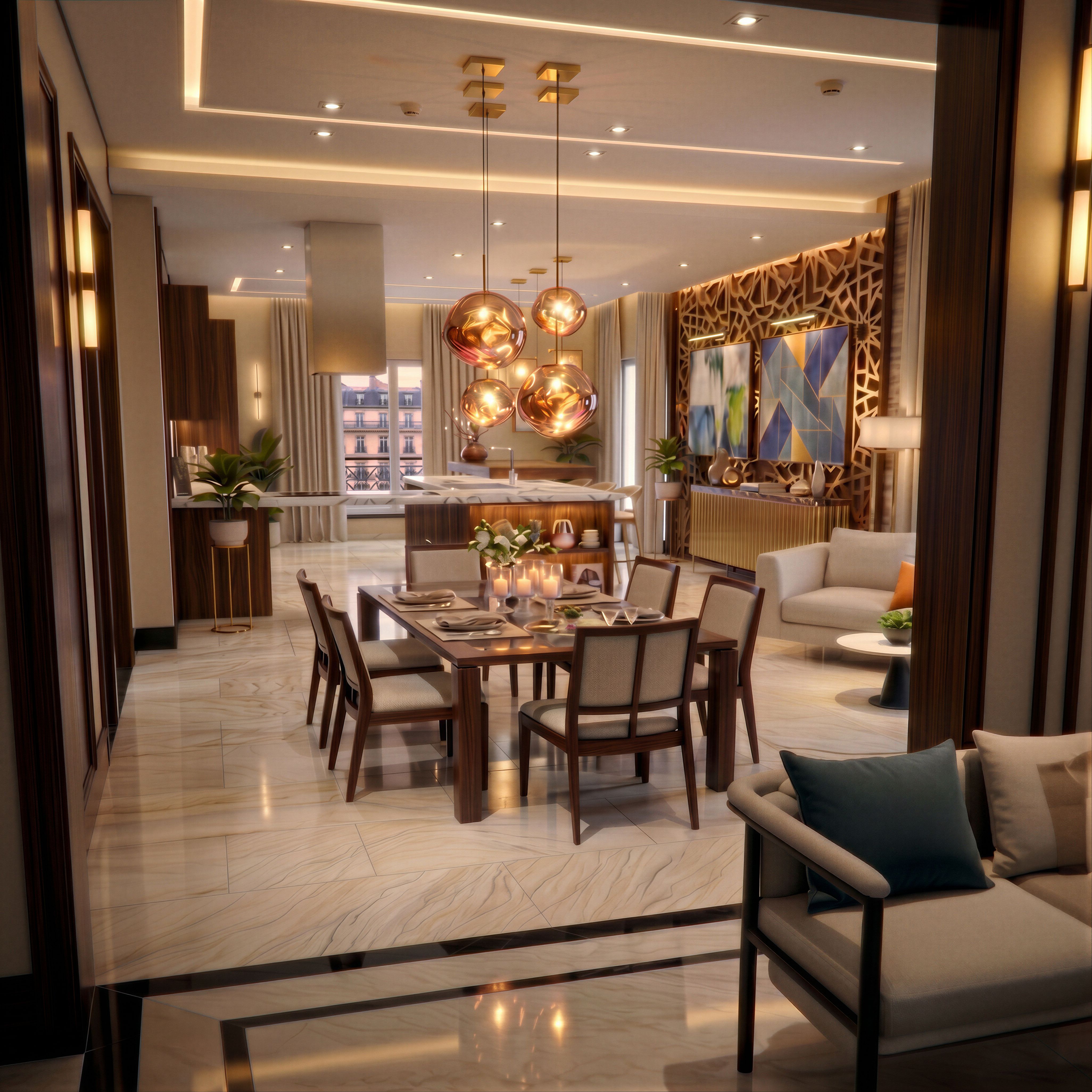 Respeta la arquitectura de interiores y el diseño general y el mobiliario y añade un estilo fotorrealista al más mínimo detalle en cuanto a luz, calidad de las texturas y enfoque de la imagen y cambia sólo los siguientes aspectos: Elimina el objeto oscuro con forma de botella que está detrás del silloncito con los cojines. , keep exact camera angle