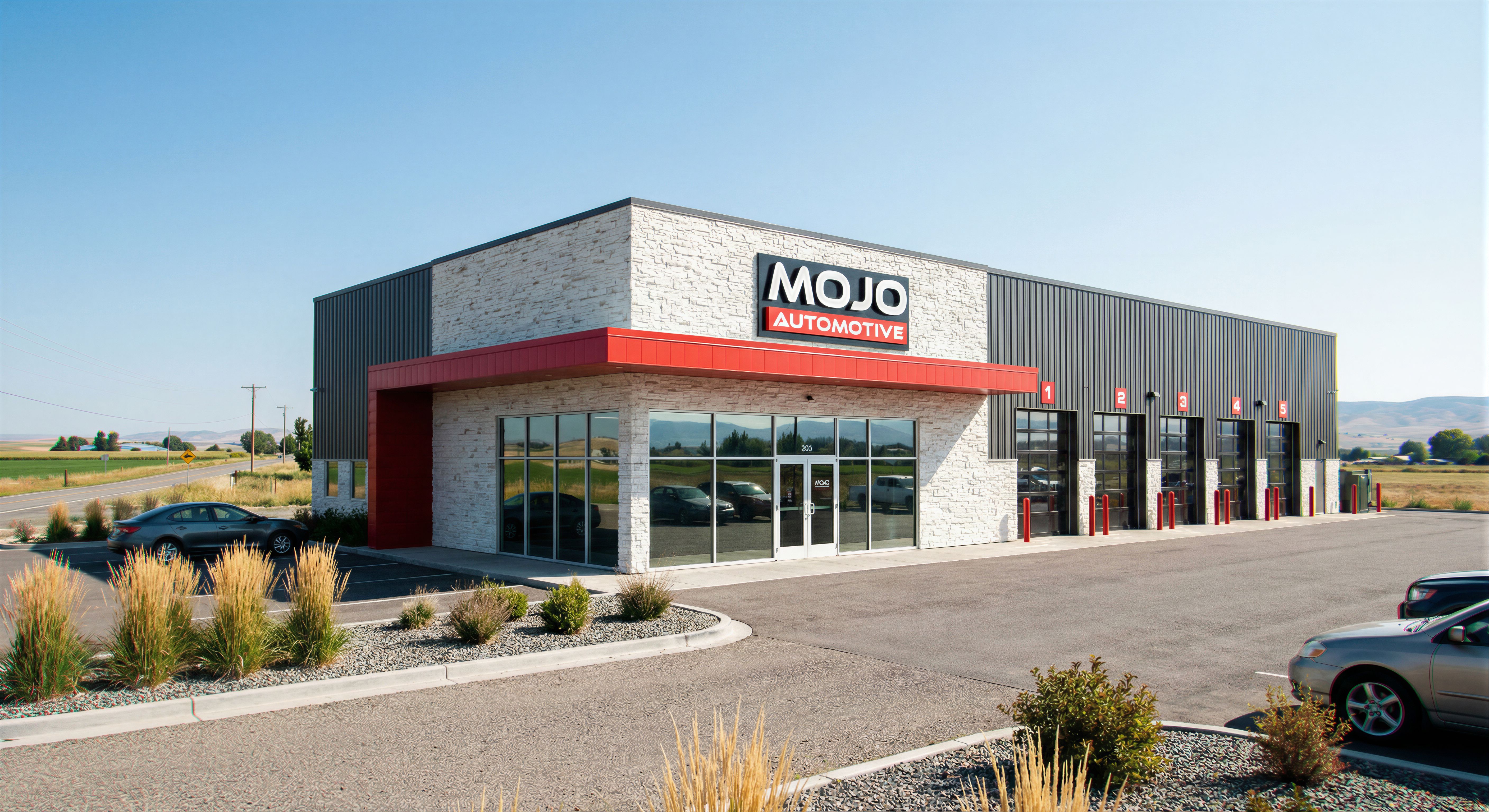 Make this image realistic in a semi urban/rural environment. Match materials from the image. Shoot image from eye level.