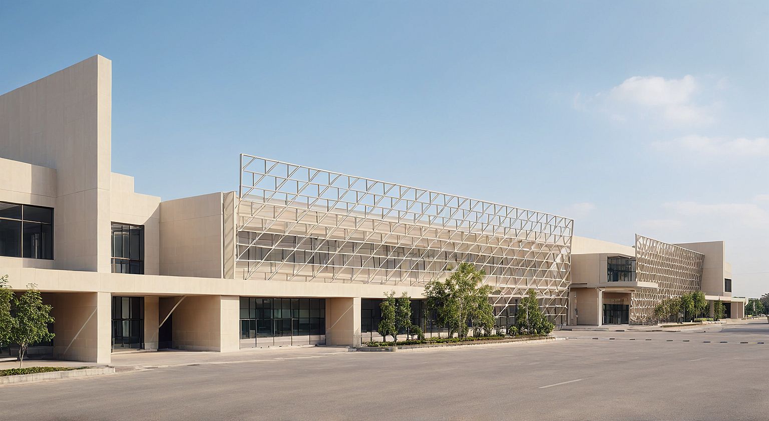 goverment building , beige paint wall , steel structure facade