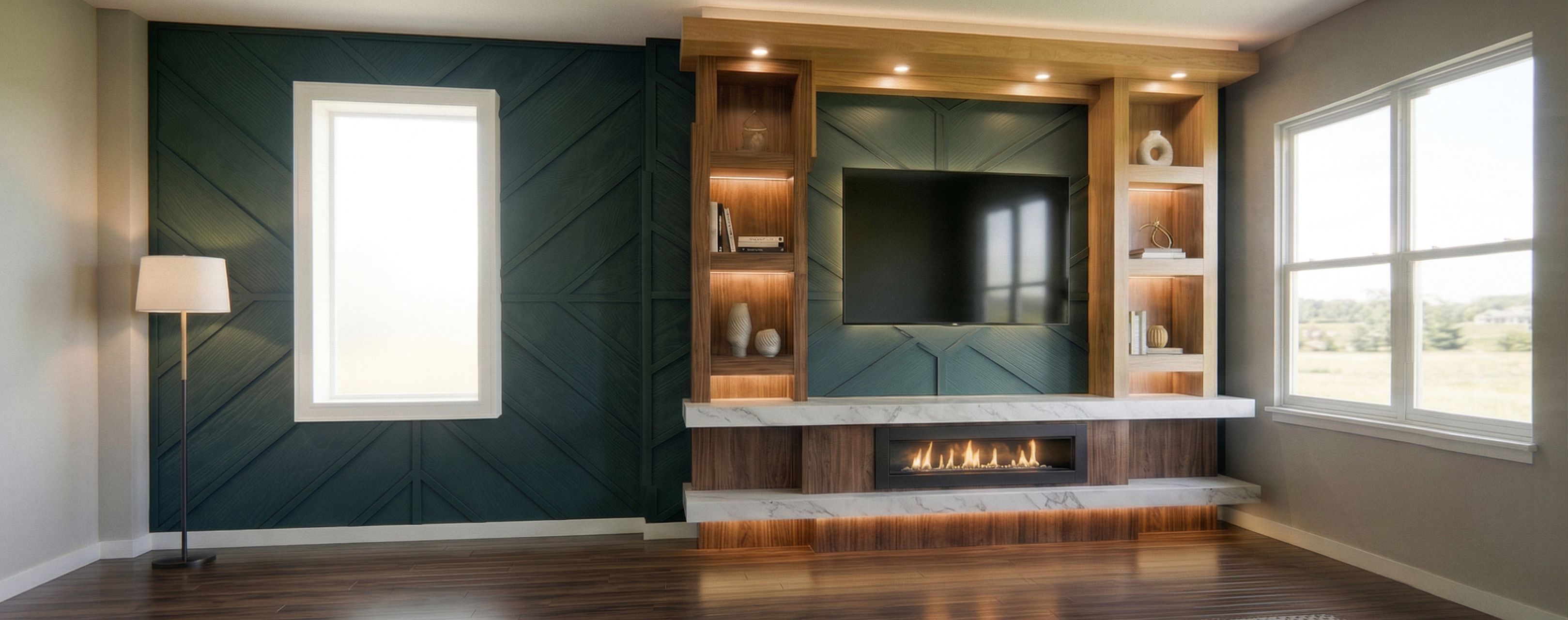 PromptDo not change the structure or components of this feature. Change only the horizontal upper ceiling mantle to a light shade of walnut.