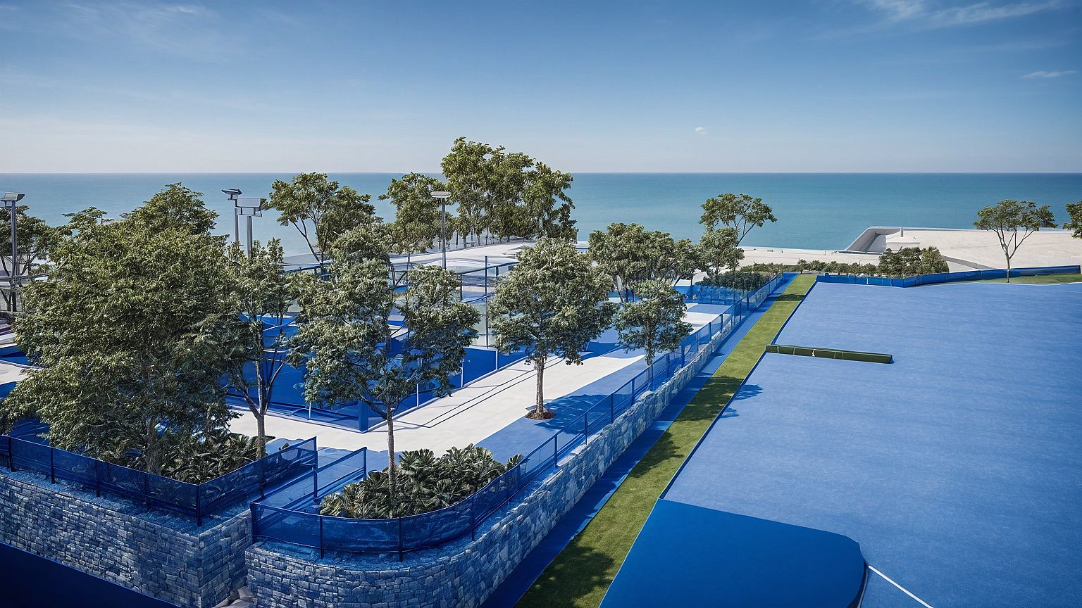 PromptKEEP THE STRUCTURAL AND ARCHITECTURAL DESIGN. KEEP THE PADEL IN BLUE COLOR PLEASE