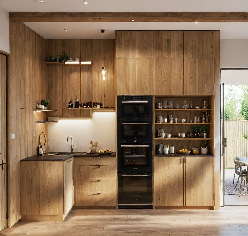 Interior design with wooden kitchen