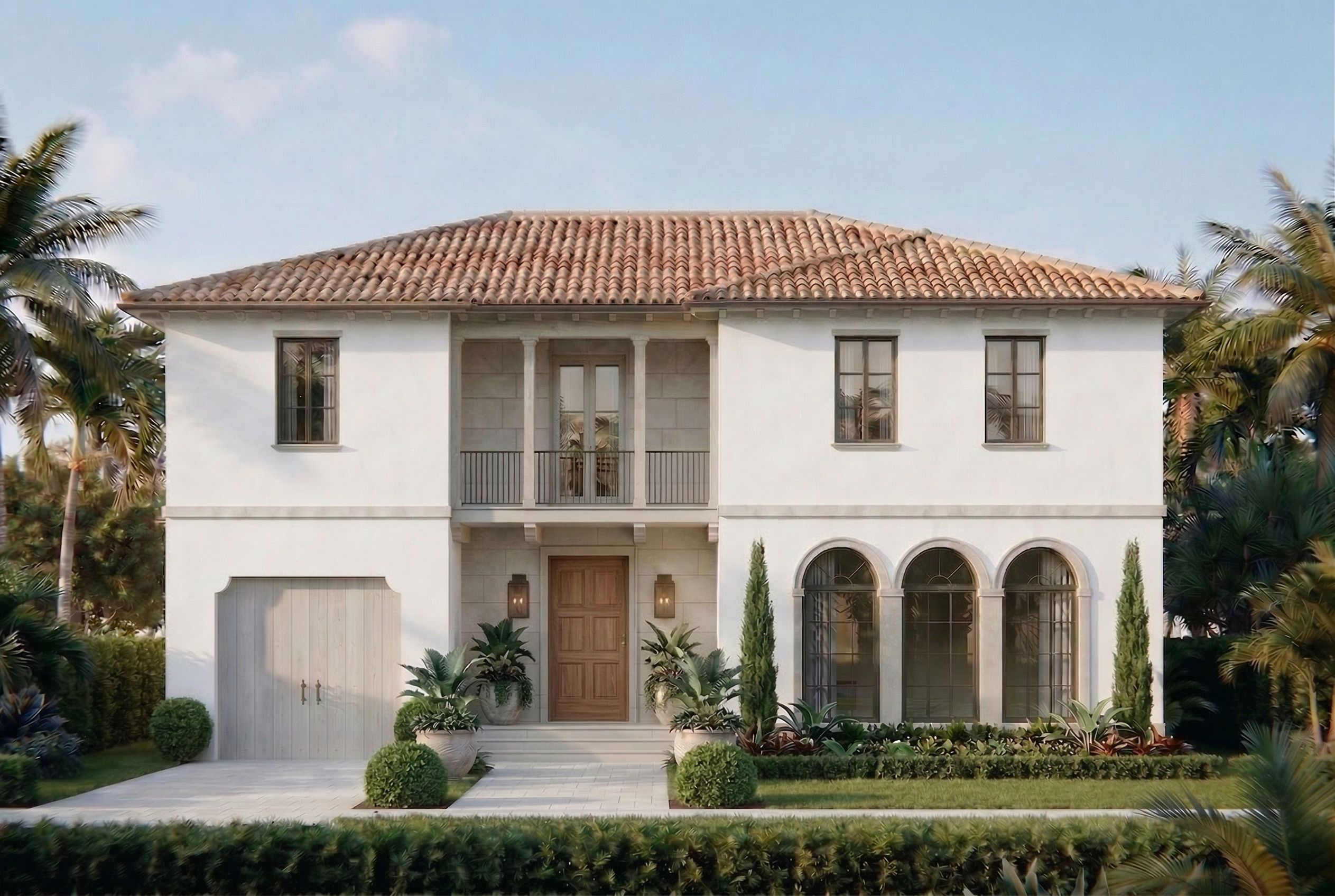Promptchange only what i say. can you show me the front door as a ntaural walnut. make teh tone complimentary to the rest of teh house, just teh front door, keep exact camera angle