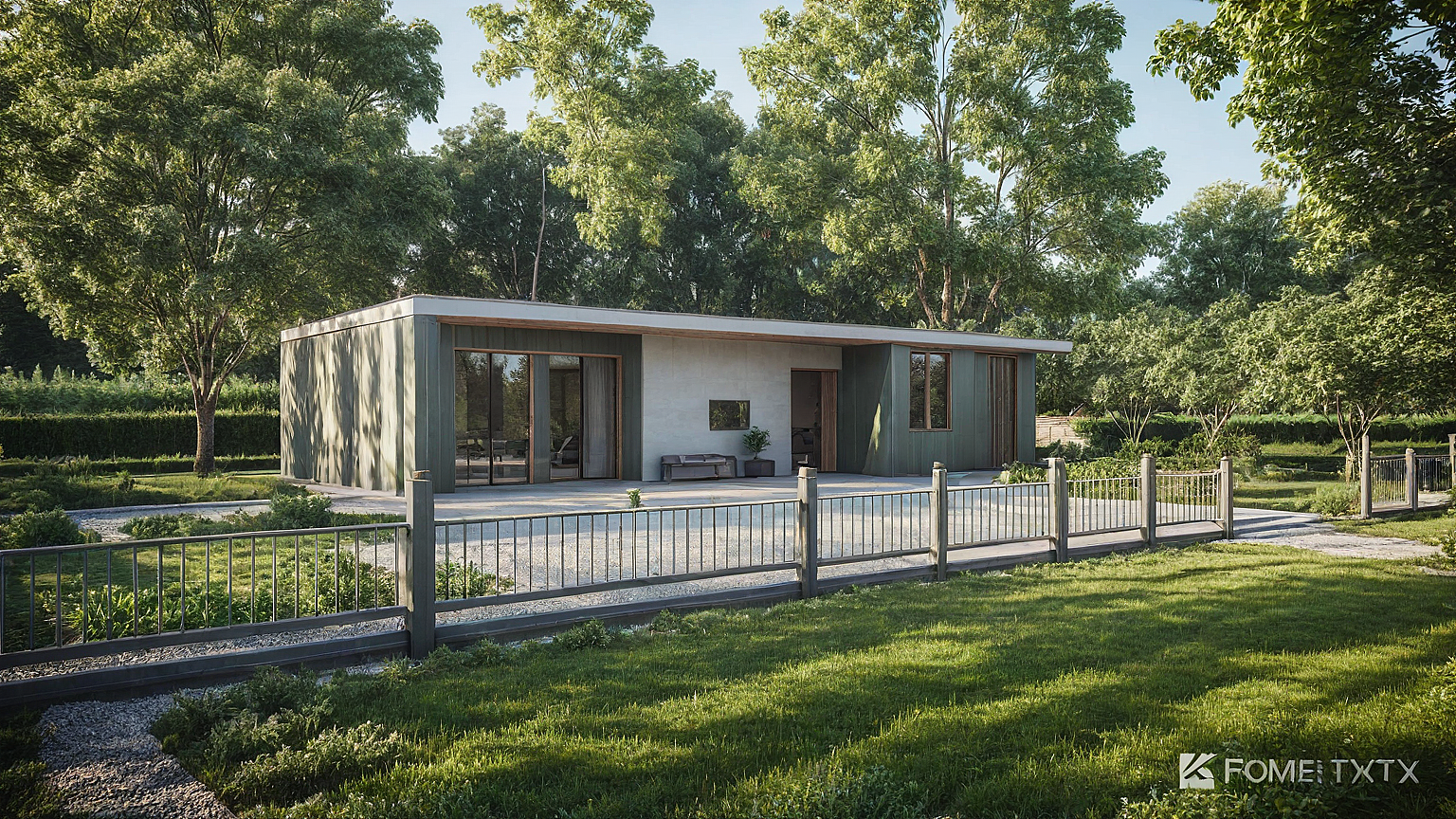 grean house with garden