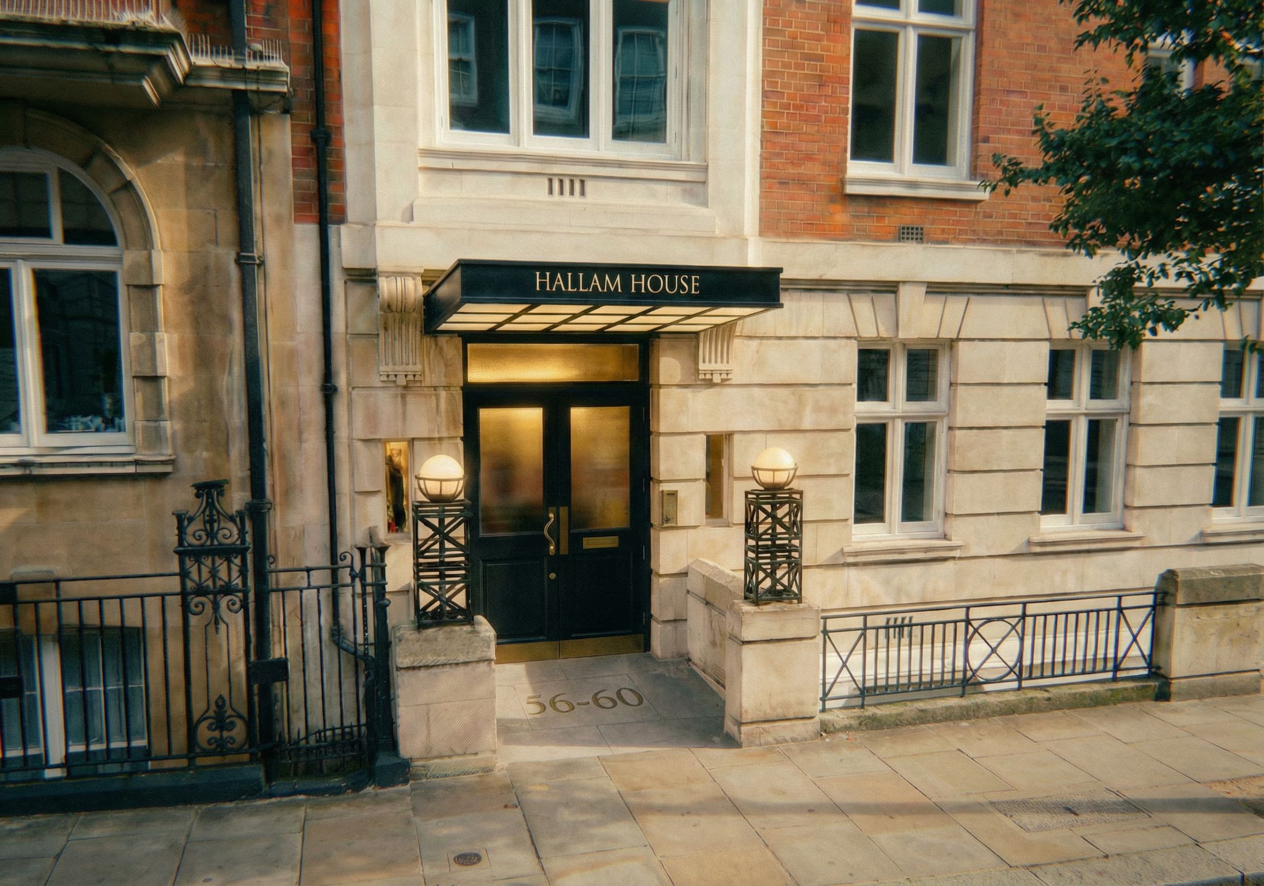Promptrender in daylight, make door and canopy black, keep internal lighting, clean stonework, dry pavement, keep exact camera angle